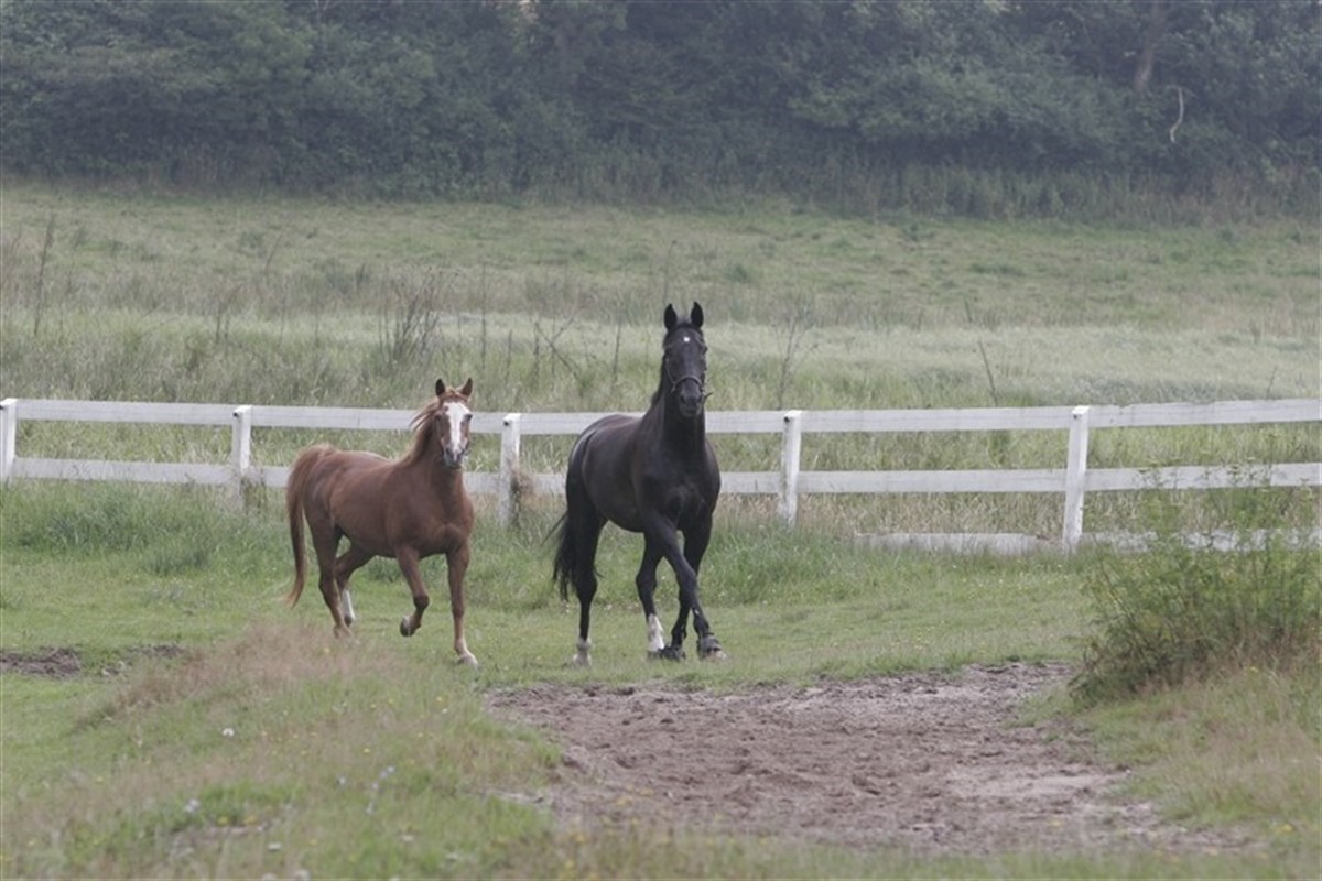 Både passager og fører i bilen overlevede, men hestene døde på stedet. Det skete ved 19.30 tiden i aftes ved Langelund nær Give. De to heste var stukket af fra deres indhegning og gik på vejen i mørke. Trods den voldsomme medfart, bilen fik, slap passageren med et brækket brystben og bilens fører med knubs. Kilde: DR