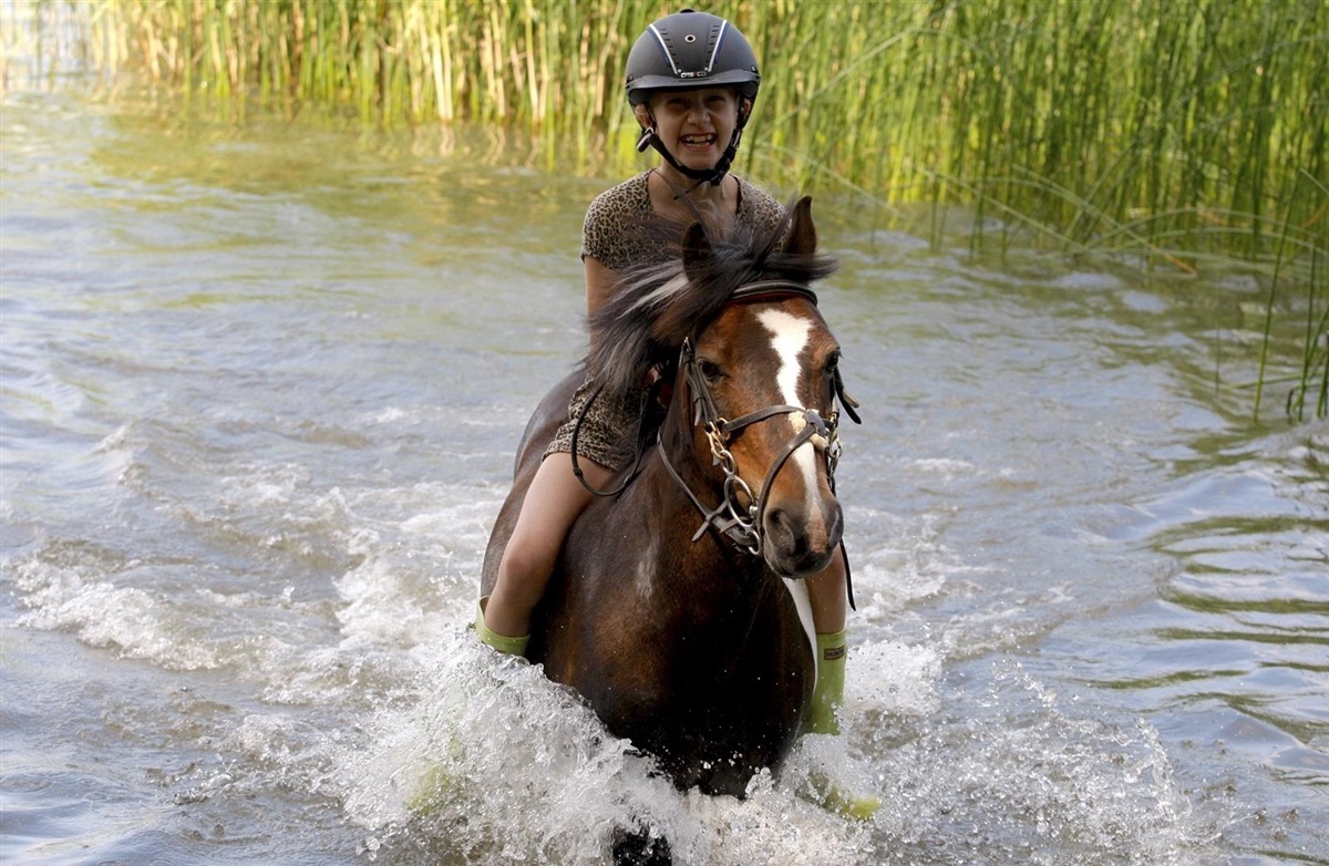 – Husk at heste reagerer meget forskelligt. Nogle kan finde på at lægge sig ned, og andre hopper eller tager hovedet under vand.