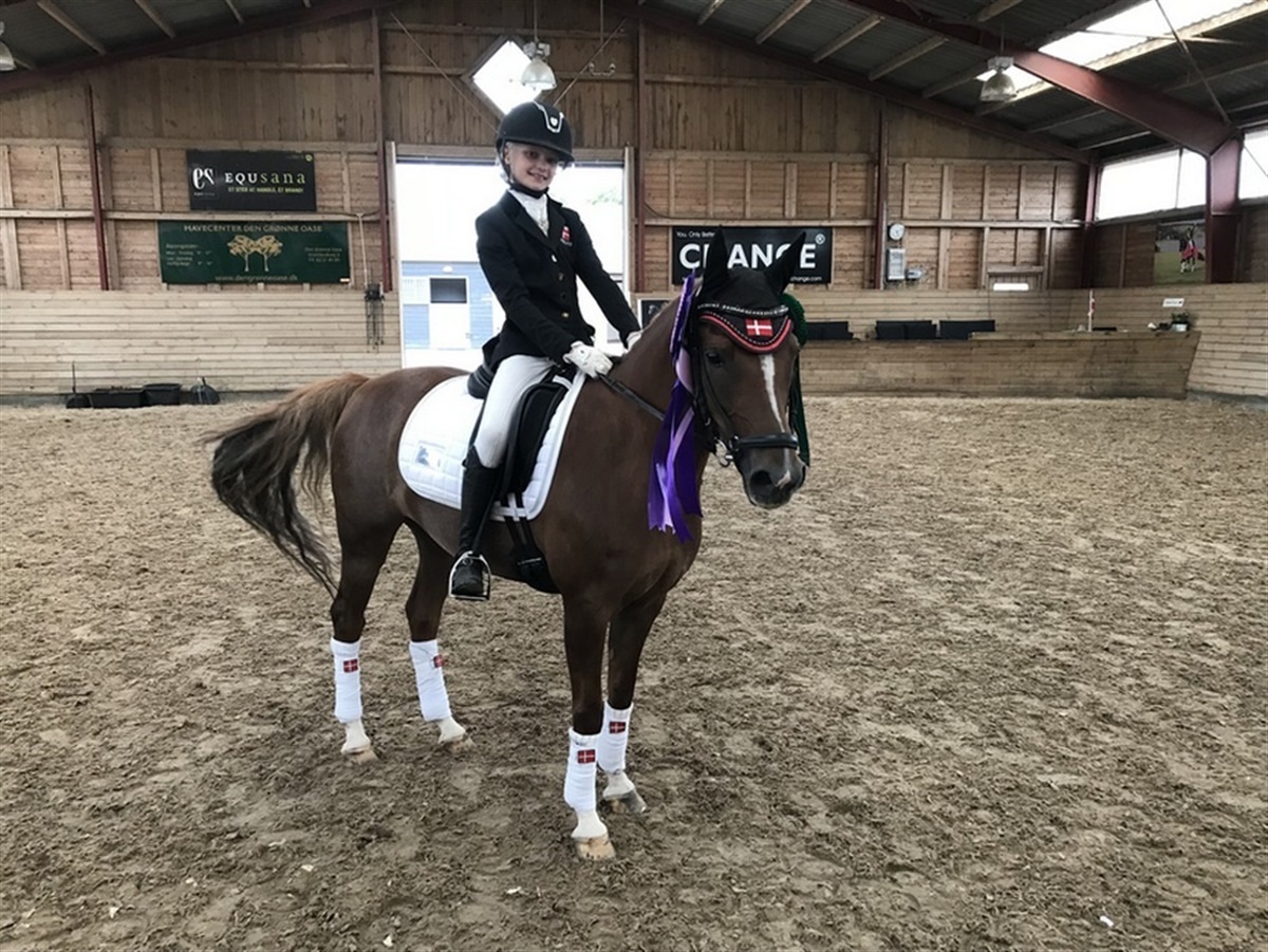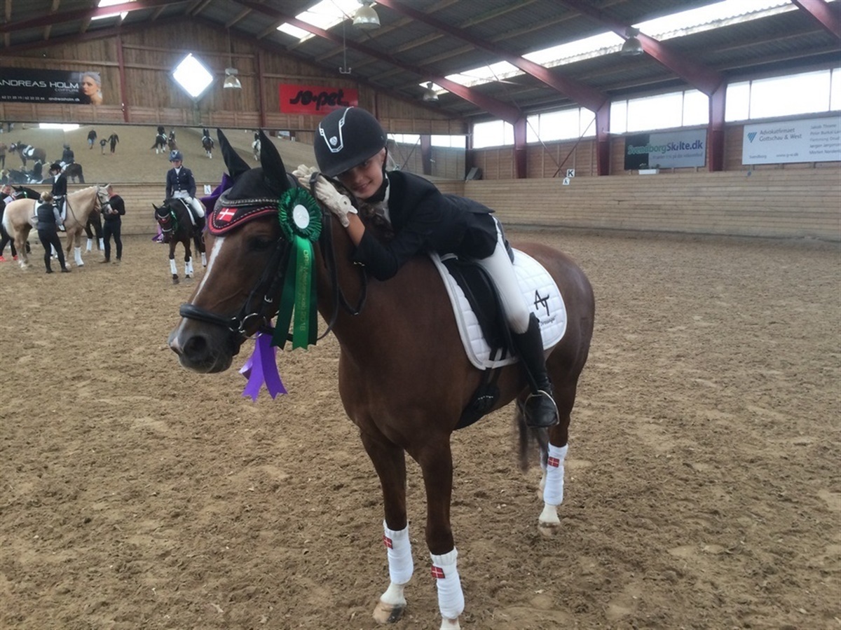 Inden jeg selv skulle ride fejrede jeg, at min gamle treer pony, Stallone blev Danmarksmester. Jeg købte ham for mine egne penge og uddannede ham fra helt rå til DM, før jeg solgte ham for at kunne komme videre på to´er pony. Jeg var utrolig stolt og glad over, at se ham nå så langt.