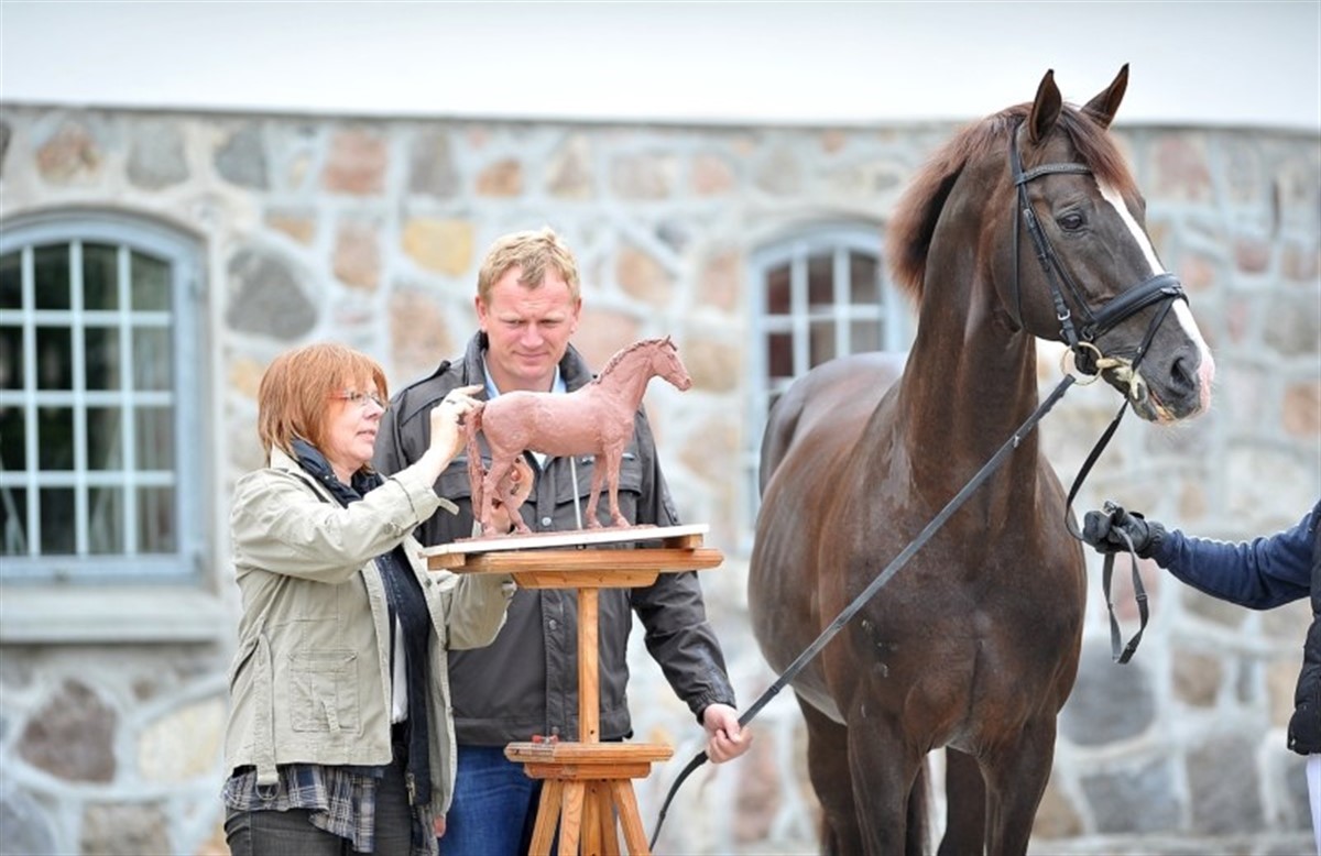 Ved indvielsen af Blue Hors' store ombygning på Korshøjgaard til foråret vil Heike Landhers bronzestatue i naturligstørrelse af stempelhingsten Blue Hors Don Schufro blive afdækket. Den tyske kunstner er i fuld gang med arbejdet, der i første omgang består i at skabe en nøjagtig gengivelse af hingsten i form af en lille figur i ler, der skal danne basis for bronzestatuen i virkelighedstro størrelse. 19-årige Blue Hors Don Schufro e. Donnerhall / Pik Bube I har haft umådelig betydning for hingstestationen Blue Hors og for den danske dressurhesteavl. Sportsligt har han været succesfuld i dressur på internationalt niveau og var under Andreas Helgstrand medvirkende til at vinde OL-holdbronze i 2008.