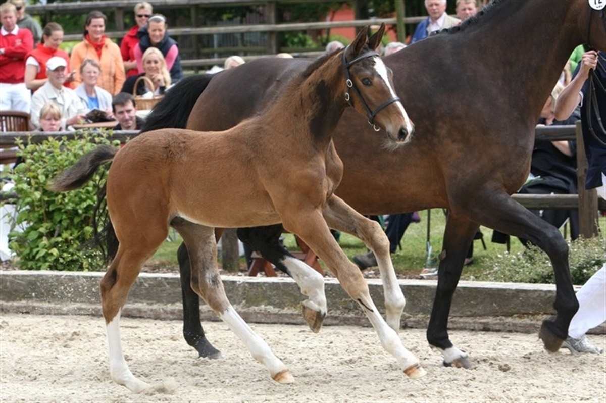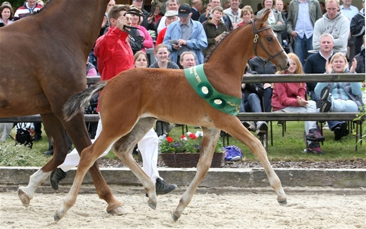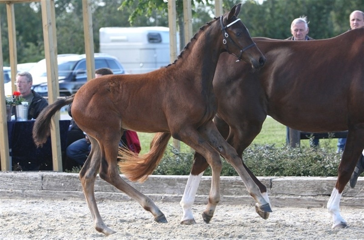 I hestevenligt vejr med moderate sommertemperaturer afviklede Blue Hors idag hingstestationens årlige følchampionat på hvad der må være en af landets smukkeste og mest velegnede baner til formålet - Blue Hors's undendørs dressurbane. Dagens dommere var Poul Graugaaard, talsmand for Dansk Varmblods kåringskommission, og den svenske hestehandler Johan Ifversson. Første gruppe til bedømmelse var de dressurbetonede hoppeføl. Her var de otte finaleføl efter Romanov, Doolittle, Rosoff, Leredo, Don Romantic samt Zack (2 stk.). Skuets bedste blev kat. nr. 21 Aalykkes Raffinessa e. Blue Hors Romanov / Blue Hors Cavan fra Suzi Fischer Sørensen, Vejen, efter en hoppe købt på Blue Hors. Dette 3½ mdr. gamle føl er meget veludviklet, storrammet, harmonisk og overordentligt velfungerende. Anden gruppe til bedømmelse var de springbetonede hoppeføl, hvor tre finalister efter Ask-hingstene Casir, Ci Ci Senjor og Cris kæmpede om pladsen som skuets bedste. Inden denne afgørelse faldt, var der ankommet to hele busser med tyske tilskuere, som desværre havde siddet i lang tids kø på motorvejen til Danmark. Denne titel gik til kat. nr. 62 Niva Lille Lunden e. Cris Ask / Fredericus Rex fra Preben Iversen, Randbøl. Dette springbetonede føl var udover en dejlig type og en super galop også udstyret med en fantastisk travbevægelse. Også i gruppen af springbetonede hingsteføl gik tre i finalen. Heraf var en efter Cris og to efter Ci Ci Senjor. Det blev det meget flotte føl kat. nr. 72 e. Ci Ci Senjor Ask / Casir Ask fra Joan Arler og Peter Børsen, Kolding, som løb af med sejren og endnu engang var der tale om et meget komplet føl, der fungerede i alle tre gangarter. Den største gruppe i Blue Hors Følchampionat var de dressurbetonede hingsteføl, som var faldet efter hingste som Bentley, Don Romantic, Doolittle, Hotline, Leredo, Romanov (2), Rosoff (2), Rush Hour (2) og Zack (9). Titlen som skuets bedste gik til fantastiske Ringsbo's Zee Me Blue e. Blue Hors Zack/ Blue Hors Don Schufro fra sejrsvante Stald Ringsbo, Glamsbjerg. Stutteriet har blandt mange følskue-succeser vundet titlen "Bedste dressurbetonede hoppeføl 2008" på Blue Hors Følchampionat med et føl af netop samme kombination. I år var føllet dog efter stutteriets nye avlshoppe, der tilsyneladende lever op til den høje standard.