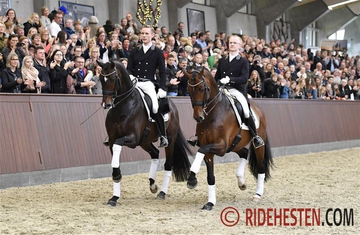 14 dressurhingste fra Blue Hors og 6 springhingste fra Stutteri Ask blev i dag fremvist. Begge hingstestationer har netop haft fremragende succes ved Dansk Varmblods hingstekåring i Herning i marts måned. Til dels med deres ældre hingste i sporten, men ikke mindst med deres nye kollektion af unghingste. Dansk Varmblod udpegede ti præmiehingste i det store hold af unghingste, hvor Blue Hors stod med tre af de fem dressurbetonede præmiehingste, og Stutteri Ask stod med tre af de fem springbetonede præmiehingste.