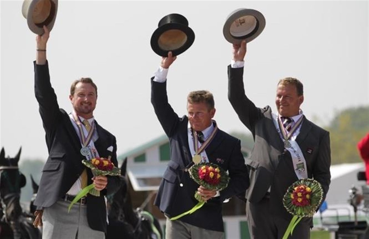 Boyd Exell (AUS) holdt hovedet koldt i den afgørende keglekørsel i firspandskonkurencen ved Alltech FEI World Equestrian Games ™ 2014 i Normandiet og scorede en fantastisk fejlfri runde, der sikrede ham den tredje verdensmesterskabstitlen i træk. Chester Weber (USA) vandt sølv og europamester Theo Timmerman (NED) vandt bronze medalje. Det hollandske hold vandt for fjerde gang i træk, efterfulgt af Tyskland og Ungarn.
