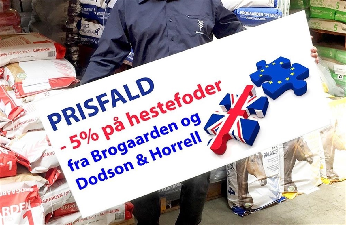 Nu er pundet faldet! Brexit giver lige nu og her pundfordele, som vi vil give direkte videre til vores kunder. Det betyder at ALLE Brogaardens hestefodervarianter falder med gennemsnitlig -5% i vejl. udsalgspriser.