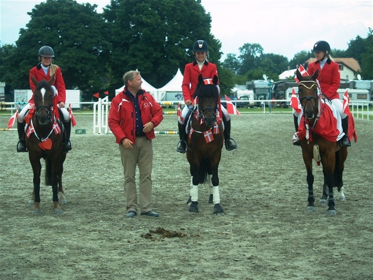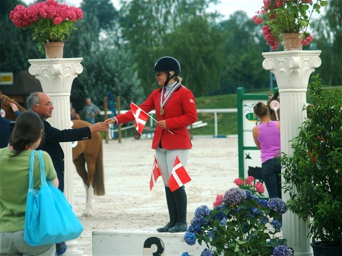 EM for ponyer blev så spændende, at det næsten ikke var til at bære for springrytterne og deres forældre, trænere og holdleder. Efter tre konkurrencedage måtte der omspringning til for at afgøre bronzemedaljen, og der var dansk deltagelse i omspringningen. Jessica Vinter Jensen og Nikolina kom til finalerunderne i dag uden fejl, men 12 fejl i første runde sendte hende ned på 8. pladsen. Hun kom dog stærkt igen, og resultatet blev, at hun måtte ud i en omspringning mod Pippa Allen fra England, og Laura Klaphage. Jessica red fejlfrit og sikrede sig bronzen. Engelske George Whitaker vandt guld og Maurit Tebbel vandt sølv. Der er super stemning i den danske lejer der i skrivende stund fejrer Jessica inden turen gå med Danmark.