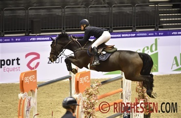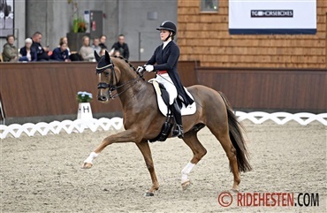 Sabine Korfitz Christensen og Calina e. Ci Ci Sejnor Ask (opdr. Aage Larsen) opnåede 8,8 fra stildommerne og det var klassens højeste stilkarakter. Hun skulle derfor starte sidst, men lige som hun var klar, tabte Calina en sko. Den blev lynhurtigt slået på at stævnesmeden Peter Moes, men det gav naturligvis noget pres på Sabine.