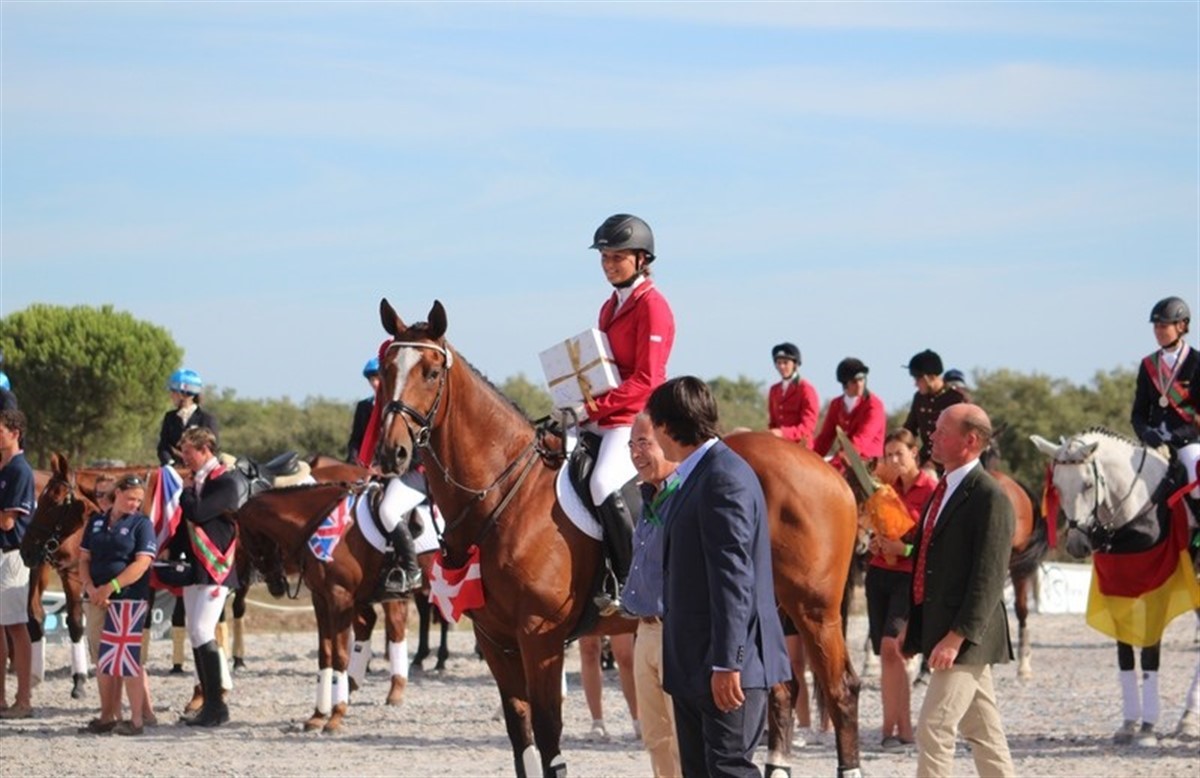 EM i military for juniorer blev afviklet i Vale Sabroso i Portugal den 9. – 11. september. Guldet gik til Zoe Brenan fra Storbritannien, Kevin Seignier fra Frankrig fik sølv, og bronzen gik til britiske David Doel. Dressuren, som var første disciplin, løb af stablen fredag, og efter et ridt med enkelte småfejl i skridten og paraderne lå Camilla Sæbø Hansen og Zanzibar fint med i toppen af klassen på en delt 12. plads med 48,1 minuspoint. Det var dog et lidt skuffende resultat for ekvipagen, da Zanzibar normalt er meget sikker i dressuren, men da der kun var 6,2 minuspoint til britiske Emily King og Mr. Hiho på 1. pladsen var mesterskabet endnu langt fra afgjort. Terrænbanen, som var bygget af Eric Winter, så ved første øjekast ikke ud til at skulle volde de store vanskeligheder. Men allerede efter første afdeling måtte rytterne se i øjnene, at banen var mere vanskelig end umiddelbart antaget. Ud af de 53 startende ekvipager i mesterskabet måtte 12 udgå i lørdagens terrænridt og yderligere 11 ryttere måtte indkassere et eller flere stop. Kun 18 ryttere formåede at gennemride banen helt fejlfrit. Camilla Sæbø Hansen og Zanzibar viste god form hele banen rundt, og hvert spring blev forceret i overbevisende stil, og målstregen blev passeret blot et enkelt sekund over den tilladte tid. Resultatet betød, at den danske ekvipage rykkede fire pladser frem i klassementet, hvor det endte med en 8. plads inden søndagens afgørende ridebanespringning, hvor blot 10,2 point udgjorde afstanden fra nr. 1 til nr. 20. Kl. 15 søndag eftermiddag startede springningen for de 20 bedste ekvipager i mesterskaberne. Camilla Sæbø Hansen lå med sin 8. plads som en af de sidste starter, og som klassen skred frem, blev det klart, at det var meget småt med nulrunderne. Da den danske ekvipage red på banen, havde der således kun været fire nulrunder i hele klassen. Men stort overblik og overskud forcerede ekvipagen forhindringerne fejlfrit en efter en uden tegn på træthed efter lørdagens terrænridt. Efter knap 70 sekunder på banen red Camilla Sæbø Hansen og Zanzibar fejlfrit over målstregen. Da et par af de sidste ryttere tog en eller flere bomme, rykkede Hansen yderligere frem i klassementet og sluttede således på en meget flot 5. plads med 48,5 minuspoint. At kampen i toppen af årets mesterskab var utrolig tæt, vidner slutstillingen om. Klassens to førende ryttere inden ridebanespringningen - britiske Emily King på Mr. Hiho og tyske Josephine Wilms på Corvette D - blev med hhv. en og to bomme forvist til sekundære placeringer, mens guldet i stedet gik til engelske Zoe Brenan på Latino K der sluttede på 46,9 minuspoint. Franske Kevin Seignier på Or Du Genet red med 47,1 minuspoint sølvmedaljen hjem, mens endnu en britisk ekvipage, David Doel med Kings Cross, sikrede sig bronzemedaljen med en score på 47,9 minuspoint. I holdkonkurrencen gik guldet til England, mens sølvet gik til Tyskland og bronzen til Frankrig. Den danske ekvipage fik ekstra hæder med hjem fra EM. Allerede inden ridebanespringningen fik Camilla Sæbø Hansen nemlig den nyhed, at Zanzibar ville blive tildelt en særlig pris for at være den hest, der var i bedst kondition efter terrænet. Kilde: Dansk Ride Forbund