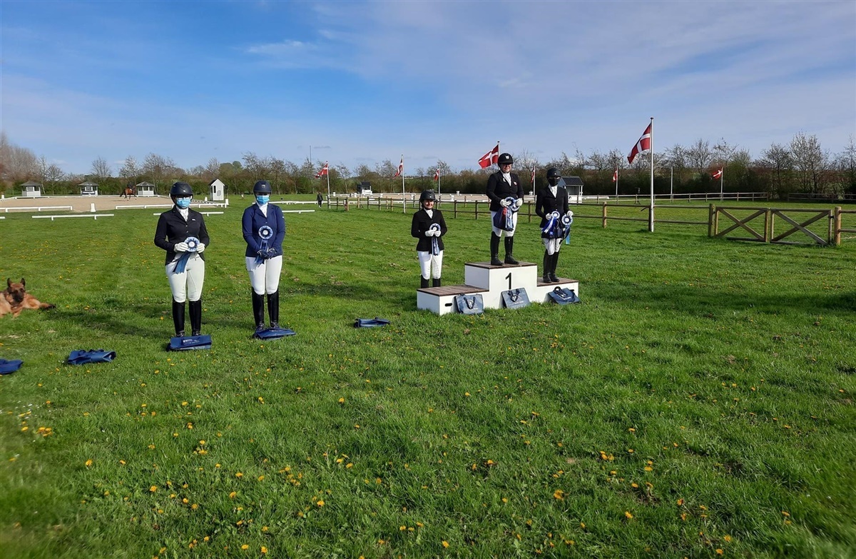 En af de lovende unge ryttere, Anne Mette Hasselstrøm med Falkærs Ramoon tog en flot 2. plads med hjem, efter et ridt, der blev belønnet med 75,250%. June Kelberg Smith blev i sadlen på Minos 3’er med 73,625%.