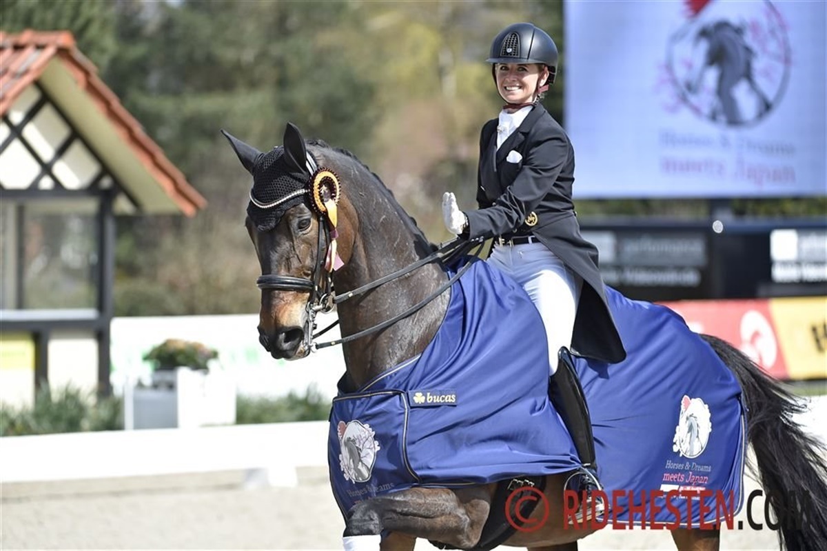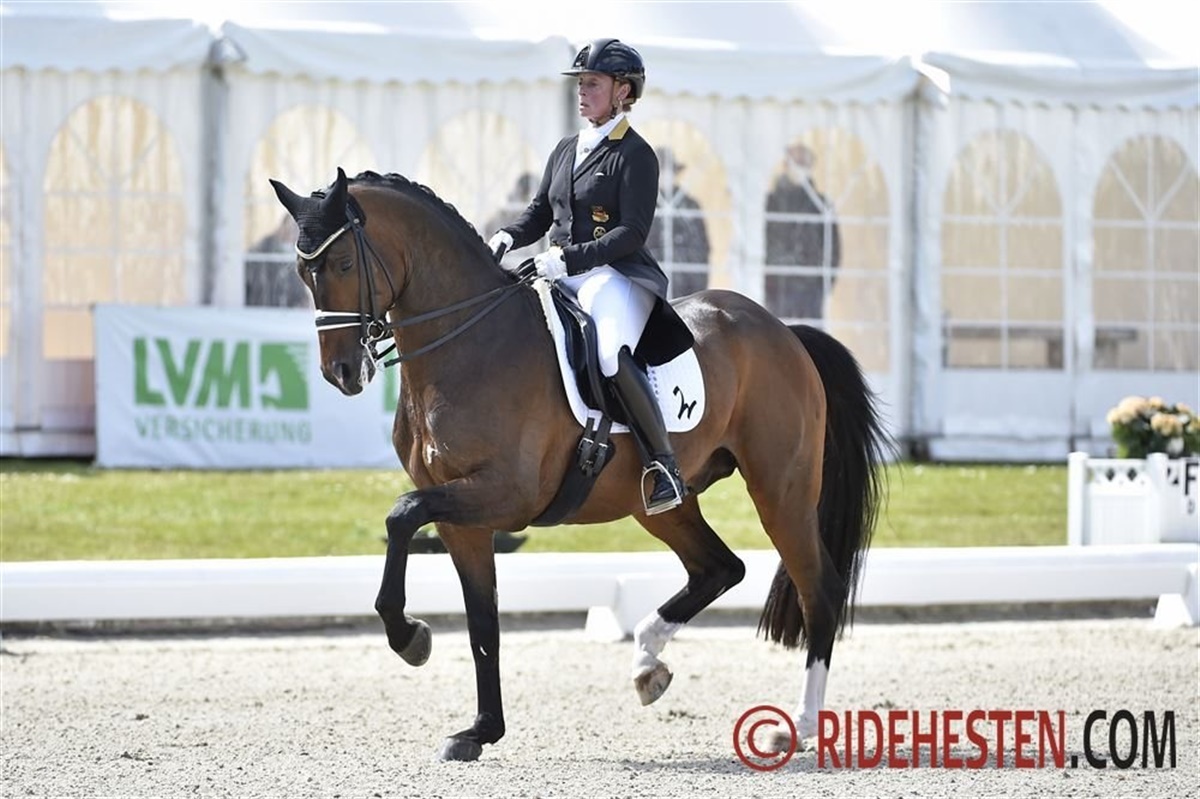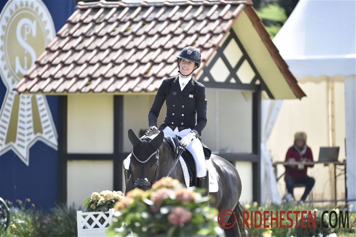 – Jeg er rigtig godt tilfreds. Og især piaffe lykkes super godt i dag. Jeg havde et par irriterende småfejl, men Danse har virkelig glædet sig helt vildt til at komme til ridestævne igen, siger Carina Cassøe til Ridehesten.com efter sit flotte ridt.