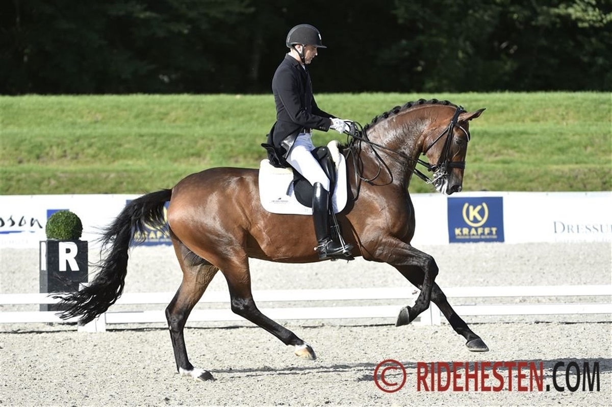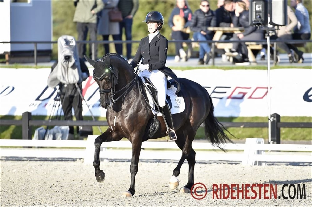 Andreas Helgstrand ligger på bronzepladsen med Fiontini e. Fassbinder (opdr. Henrik Hansen) Hør ham fortælle om sit ridt i nyheden som man finde HER, og Cathrine Dufour red sin mesterskabsdebutant, Vamos Amigos e. Vitalis ind på fjerdepladsen med 73,02% Charlotte Heering og Bufanco e. Negro opnåede 72,6%