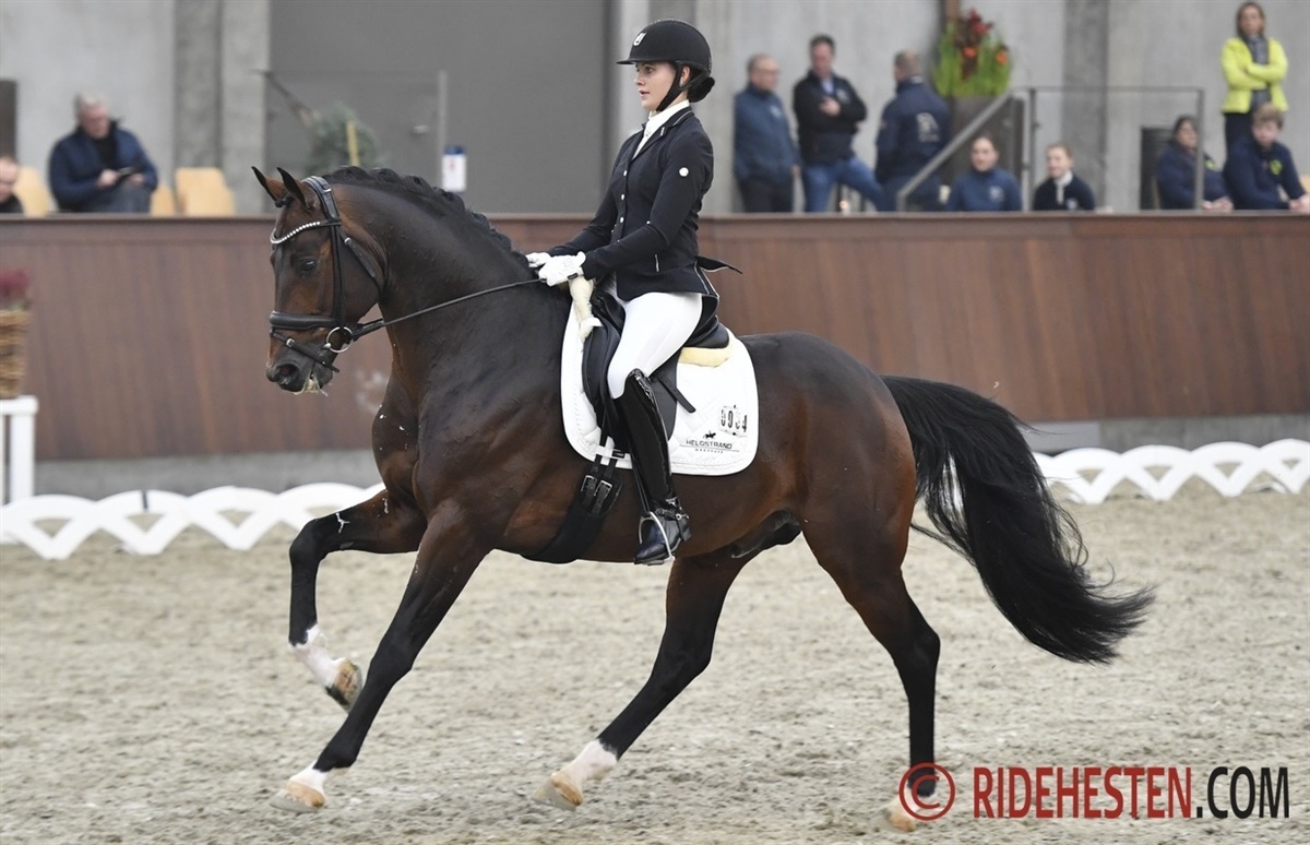 Carina Cassøe Krüth brillerede sidste år ved ikke blot at vinde 6-års finalen med Heiline's Danciera, men også at blive nr. 2, og det blev hun på bronzemedaljehoppen Red Diamant e. Blue Hors Romanov/ Dream of Heidelberg (opdr. Mie Sabroe Jelle), der lige som Danciera er en erfaren UVM-deltager og oven i købet også ejes af Ingrid og Poul Thøgersen. I dag opnåede Red Diamant et resultat på 79,525, og igen høstede Carinas hest højeste karakter i ridelighed, hvor Red Diamant fik 8,8 point.