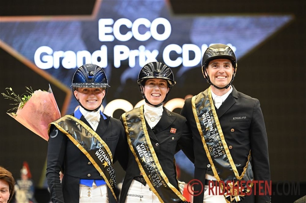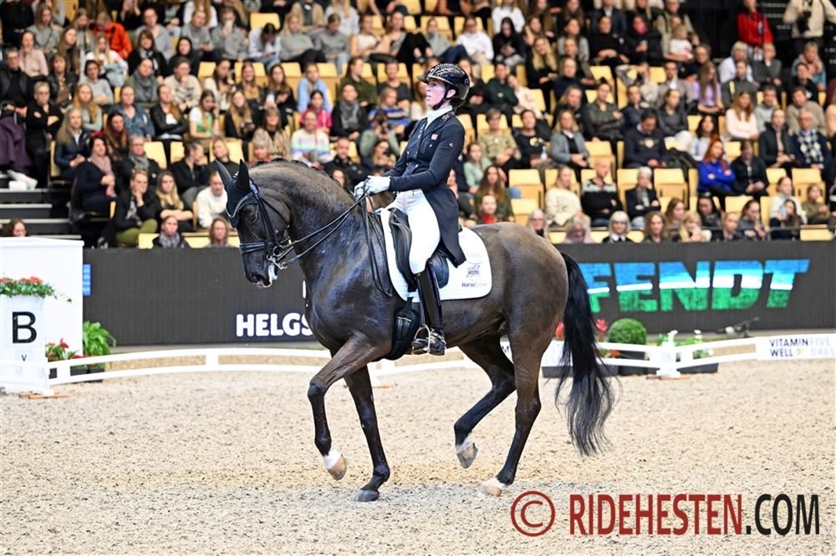 Carina kom virkelig flot fra start med en Danse – som hun hedder i daglig tale – der så virkelig oplagt og enormt smidig ud. Hun gik fri trav og sidetraversader med kæmpe skulderfrihed, sving og bæring. Den første piaffe-passage-tur var virkelig flot, og Danse gik direkte ned i en helt afspændt fri skridt, så snart Carina lavede overgangen. Anden piaffe gik hun lidt i stå, men piaffe-passage-turen til sidst kørte fuldstændig, som den skulle. Der var store, gennemsprungne toerchangementer og virkelig flotte og stabile galoppiruetter med flot balance og opadbakke-tendens. Publikum klappede velfortjent Carina og Danse det sidste stykke op ad midterlinjen, for de ved nemlig, at både hest og rytter godt kan lide det. I et næsten fuldt Boxen satte Carina og Danse personlig rekord med hele 79,717% og tog sejren.