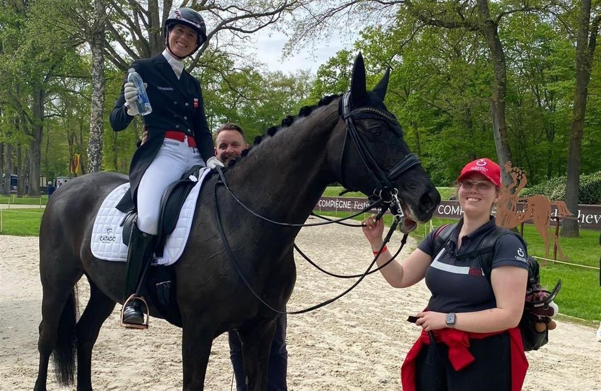 Carina har haft travlt ved stævnet i det franske, hvor hun i alt har haft tre heste til start fordelt på de 1-, 3- og 5-stjernede konkurrencer. Det blev også til en sjetteplads i den 3-stjernede Grand Prix Special i sadlen på Heiline's Zackton e. Blue Hors Zack/ Come Back II (opdr. Stald Heiline).