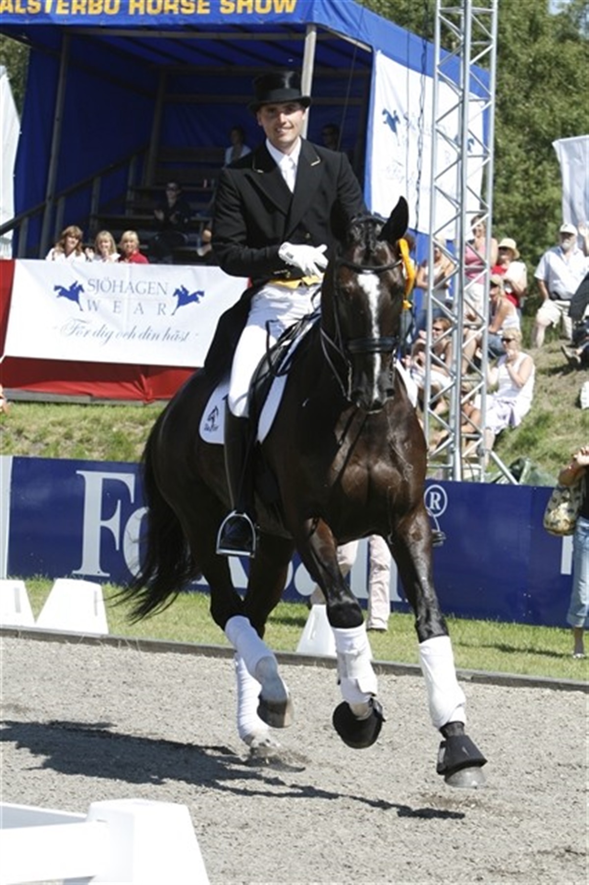 Andreas Helgstrand tog turen over sundet til Falsterbo Horse Show med Gredstedgårds Casmir for at deltage i Grand Prix-klassen. 8-årige Casmir leverede igen en super præstation i sin kun anden Grand Prix start i karrieren. I dagens klasse kunne Andreas ikke helt få lov til at vise hestens flotte travbevægelse, men til gengæld var passage og piaffe meget flotte. Galopprogrammet blev vist uden fejl, og dommerne takserede parrets ridt til 71,33%. Det var dog ikke nok til at komme forbi den svenske toprytter Jan Brink og 16-årige Briar der fik 73,29%. På andenpladsen sneg sig en 18-årig ung hollandsk rytterske ind på en dejlig velgående og øvelsessikker Jazz-søn Parzival med 71,37%.
