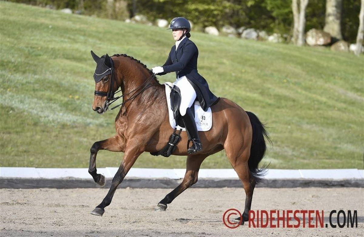 Svenske Jeanna Högberg, der er ansat hos Helgstrand Dressage, startede Christina Olssons 9-årige svenske varmblodshoppe Astoria e. Sir Donnerhall II/ Quaterback, som hun også vandt lørdagens Intermediaire II med. I Grand Prix Kür opnåede ekvipagen 75,675%.
