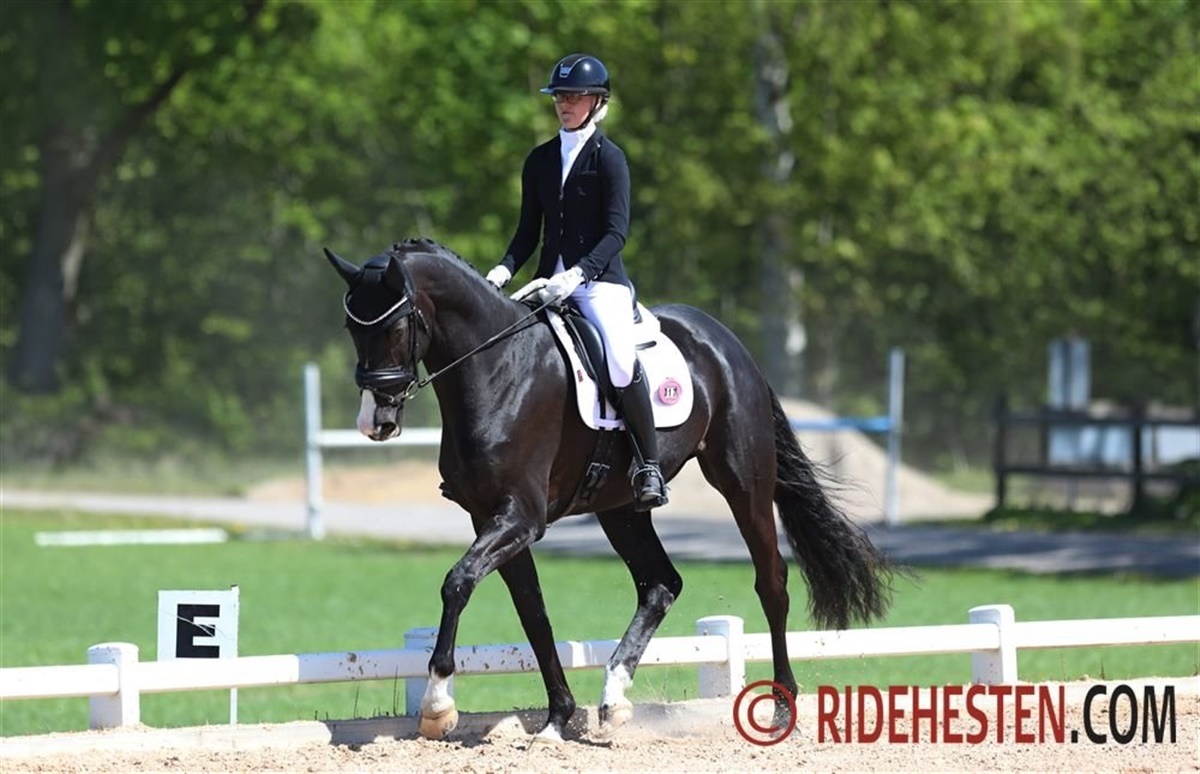 Hun tog sejren i sadlen på Skovdals Dexter e. Hesselhøj Donkey Boy/ Blue Hors Romanov (opdr. Bjarne Skovdal) med 80,636 procent.