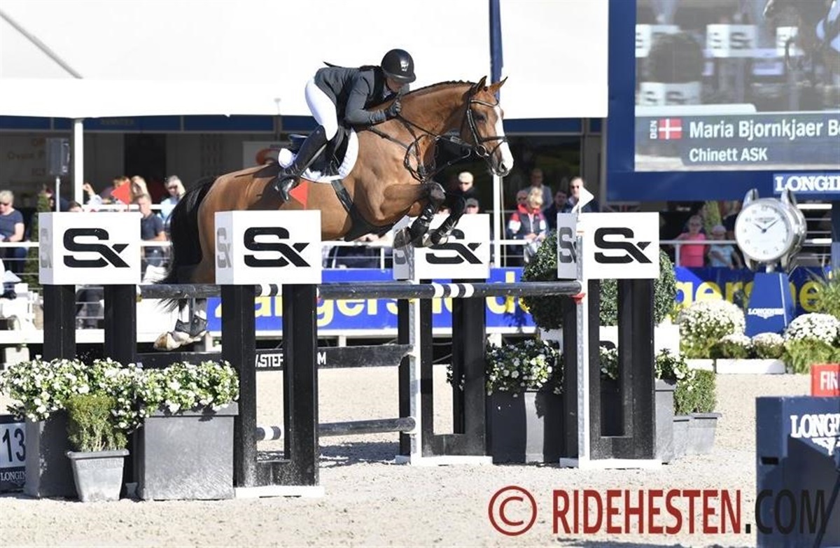 Hun havde starttid midt i feltet i omspringningen, og det stod klart, at en placering ville kræve et fejlfrit ridt i en god tid. De irske ryttere er altid "farlige" ved UVM, da de formår at ride i et godt og højt grundtempo banen rundt. Og Richard Howley fulgte den irske tradition, da han red sig i front med Uppercourt Cappuvino e. Pacino for Irland med tiden 35,17 sekunder. Maria tog kampen op mod de irske ryttere, og da hun og Chinett Ask krydsede målstregen lagde hun sig ind på en foreløbig 3. plads med tiden 39,13. Podiepladsen kunne hun ikke holde, men hun sluttede på en særdeles velfortjent og flot 6. plads i det skrappe selskab, hvor vinderen fra Irland fik selskab på podiet af to af sine landsmænd: Darragh Ryan/CSF Sir George e. Sir Shutterfly fra Irish Sporthorse og Michael Pender med HHS Vancouver e. Indroctro også fra Irish Sporthorse.