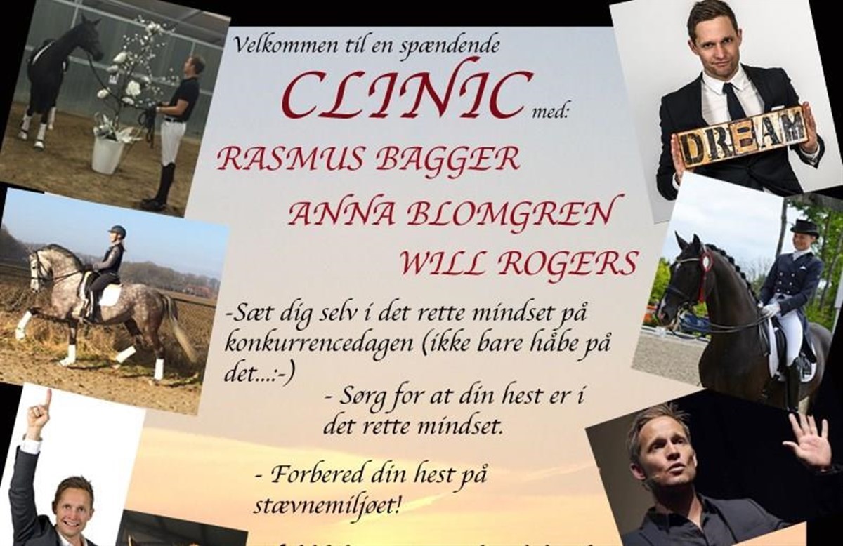 I 2014 var de tre kompetente eksperter også samlet for at give clinic. Denne gang foregik clinicen på Middelfart Ridecenter, og magasinet Ridehesten var med. Læs meget mere i artiklen ’Intelligent ridning - med Rasmus Bagger, Will Rogers og Anna Blomgren’ i magasinet Ridehestens januarnummer 2015.