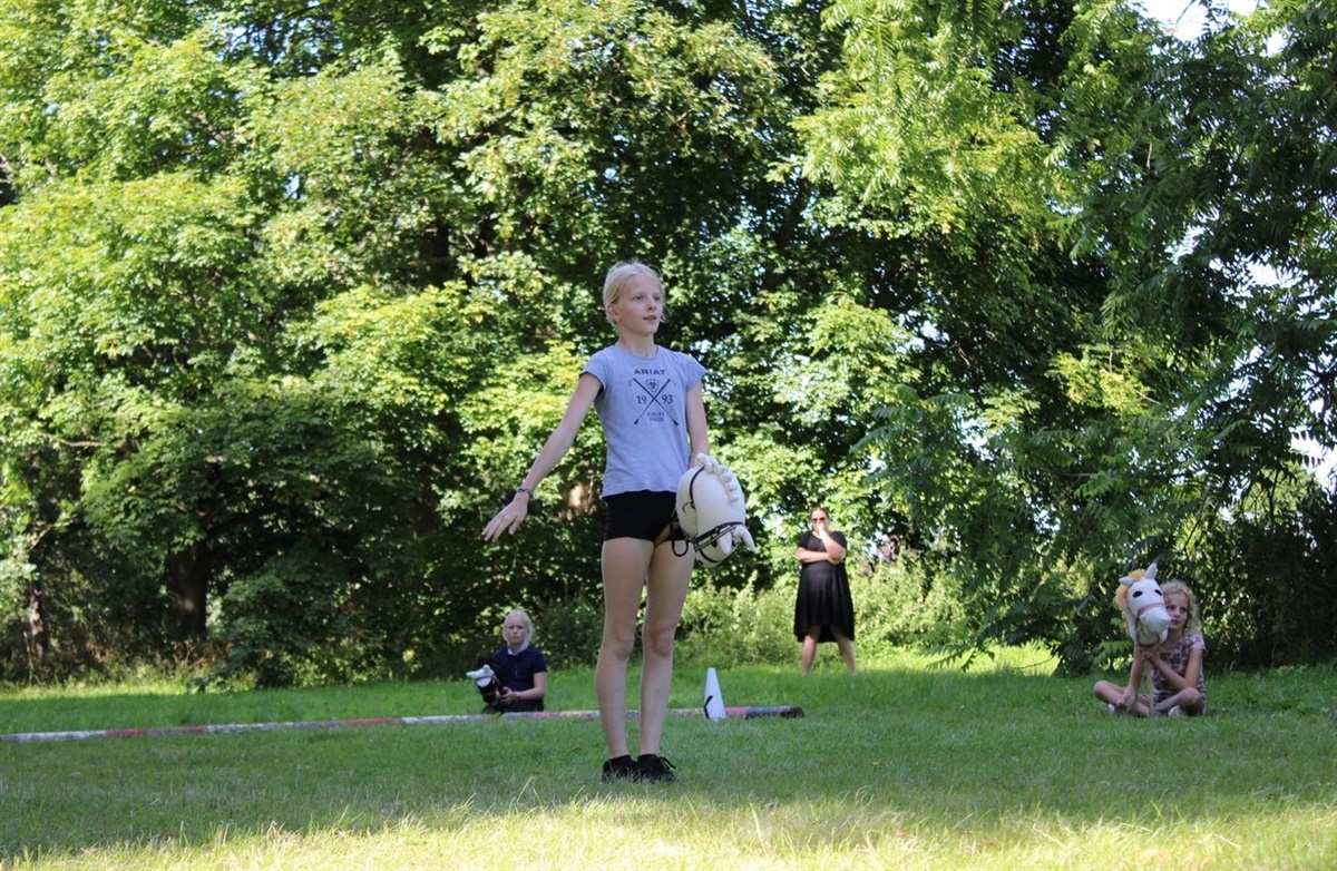 Formanden Linda Sandris ser flere gevinster ved det netop afholdte kæphesteevent: – Dels har vores egne medlemmer fra elevskolen haft mulighed for at afprøve stævnestemningen inden det går løs på hesteryg til rideskolestævnet i efteråret, og dels har børn fra lokalområdet kunne snuse til ridning. Forhåbentlig kan vi også byde nogle nye ryttere velkommen på vores ridehold senere, afslutter Linda.