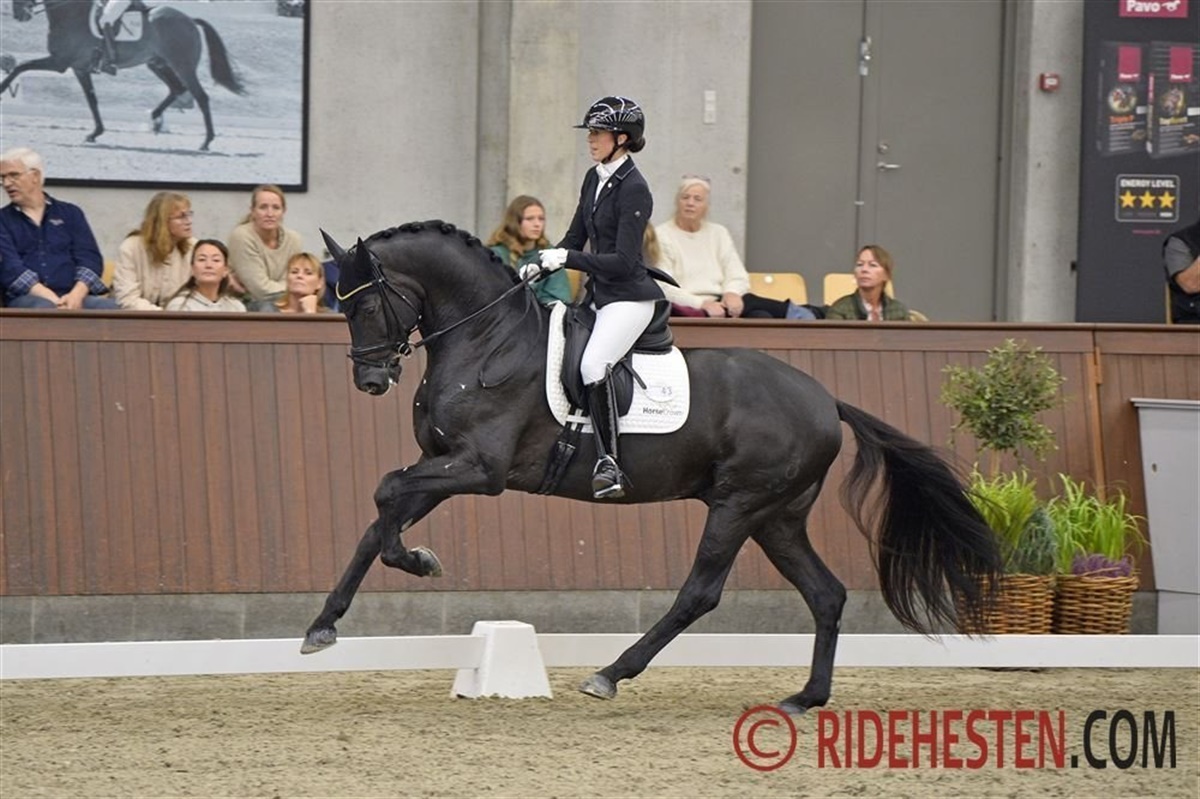 Berider Carina Cassøe Krüth fik vist den sorte hingst Movie Star e. Morricone I/ Blue Hors Bentley rigtig flot frem igen, og dommerne gav den 9,5 for trav med en kommentar om, at den arbejder rigtig godt med god energi og kraft og viste flotte øgninger. Det blev også finalens højeste kapacitetskarakter på 9,1 med ordene: – Vi trækker den lidt i ridelighed, men vi tror påden, og den byder ind med meget kvalitet.
