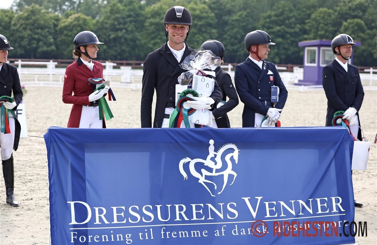 Ved DM-stævnet i Vallensbæk i sidste måned havde Daniel ladet Vayron blive hjemme, og i stedet var han til start på hoppen Shirley e. Sezuan/Solos Carex (opdr. Vivi & Christian Vang Lauridsen), som han blev nummer seks på. I forbindelse med præmieoverrækkelsen fik Daniel også overrakt en pris fra Dressurens Venner som cadeau for god ridning og holdånd.