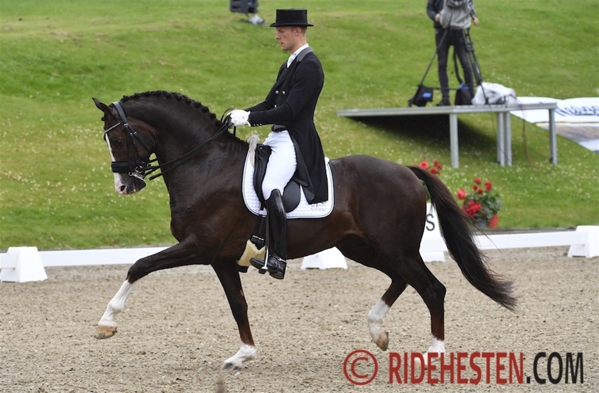 – Don O gik rigtig godt i Grand Prix'en, hvor vi red vores højeste score nogensinde og blev nummer fire med 74 procent. I küren om lørdagen gik han egentlig meget godt, men han blev bange to gange og sprang af sted, og der var også nogle problemer, der ikke har været før, med hovedrysten i starten, fortæller berideren, som tror, det kan skyldes, at der var nogle nye ting, hingsten ikke havde oplevet før.