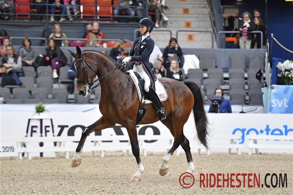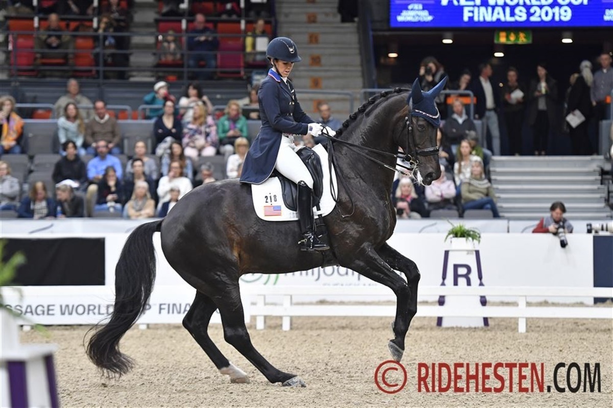 Det var også første World Cup-finale for den trettende rytter på banen, den amerikanske Adrienne Lyle. Hun var til start på den 12-årige hannoveraner Salvino e. Sandro Hit/ Donnerhall, og sammen leverede de en virkelig flot debut med et resultat på 75.326 %.