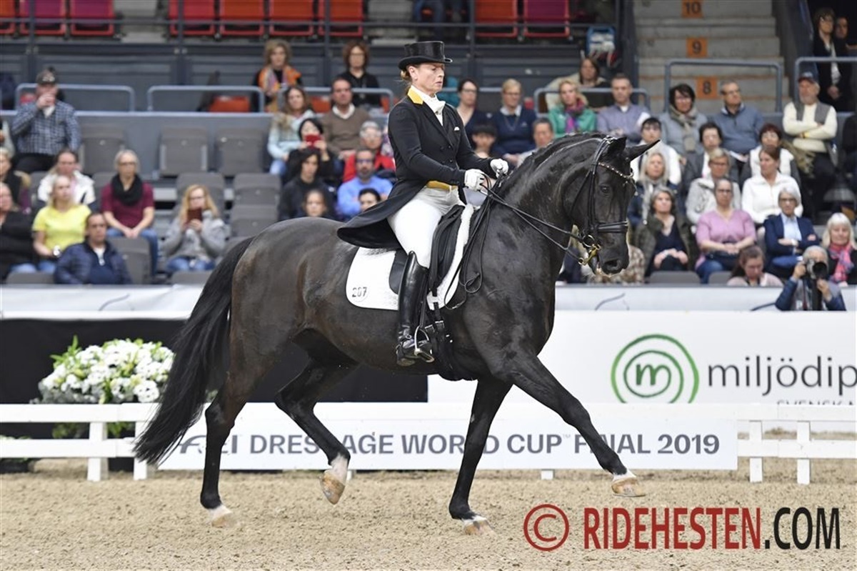 Første rytter efter pausen, med startnummer 10, var tyske Helen Langehanenberg, som tidligere har vundet World Cup-finalen, tilbage i 2013. I dag var hun til start på Damsey FRH e. Dressage Royal/ Ritual og de leverede et virkelig stærkt program og var lige ved og næsten, men endte med at lægge sig ind som nr. 2 med en score på 76.957 %.