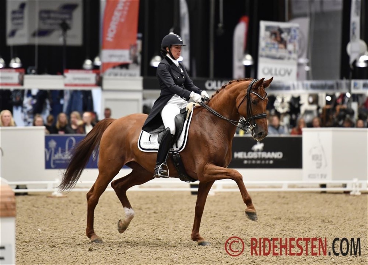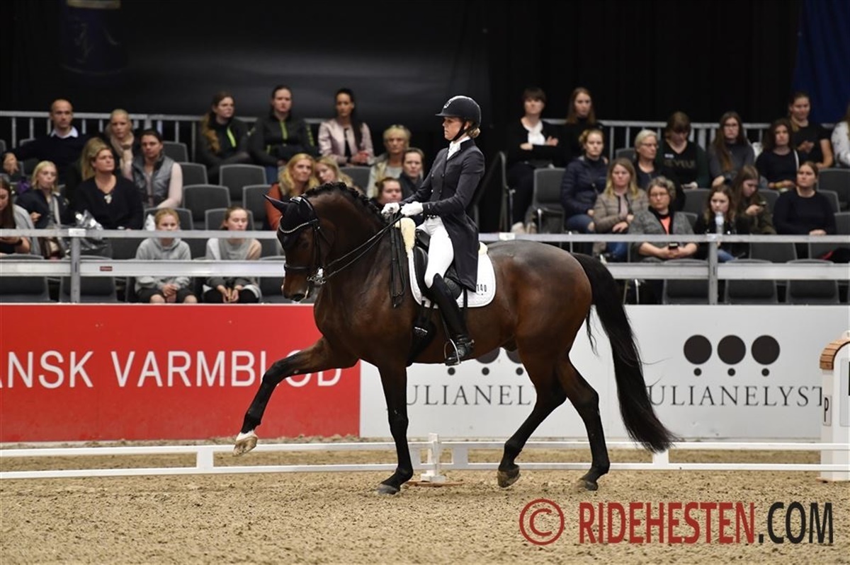 Der var fin stemning inde i Nathalie Horse Care Arena her til aften, hvor der var 14 ryttere til start i Alm. Brand Intermediaire I. Daniel Bachmann Andersen opnåede, som i Prix st. Georg, klassens bedste resultat på avlshingsten Blue Hors Zee Me Blue e. Blue Hors Zack (opdr. Louise Ringsbo). Det så dog længe ud som om Marianne Yde Helgstrand og Super Mario kunne true deres mulige sejr, da Marianne viste et fremragende og meget sikkert travprogram. De fortsatte på samme vis i galopprogrammet lige indtil Super Mario, i et splitsekund skiftede galop på forparten på vej ind i pirouetten. Marianne fik 72,088% mod Daniels 73,735%