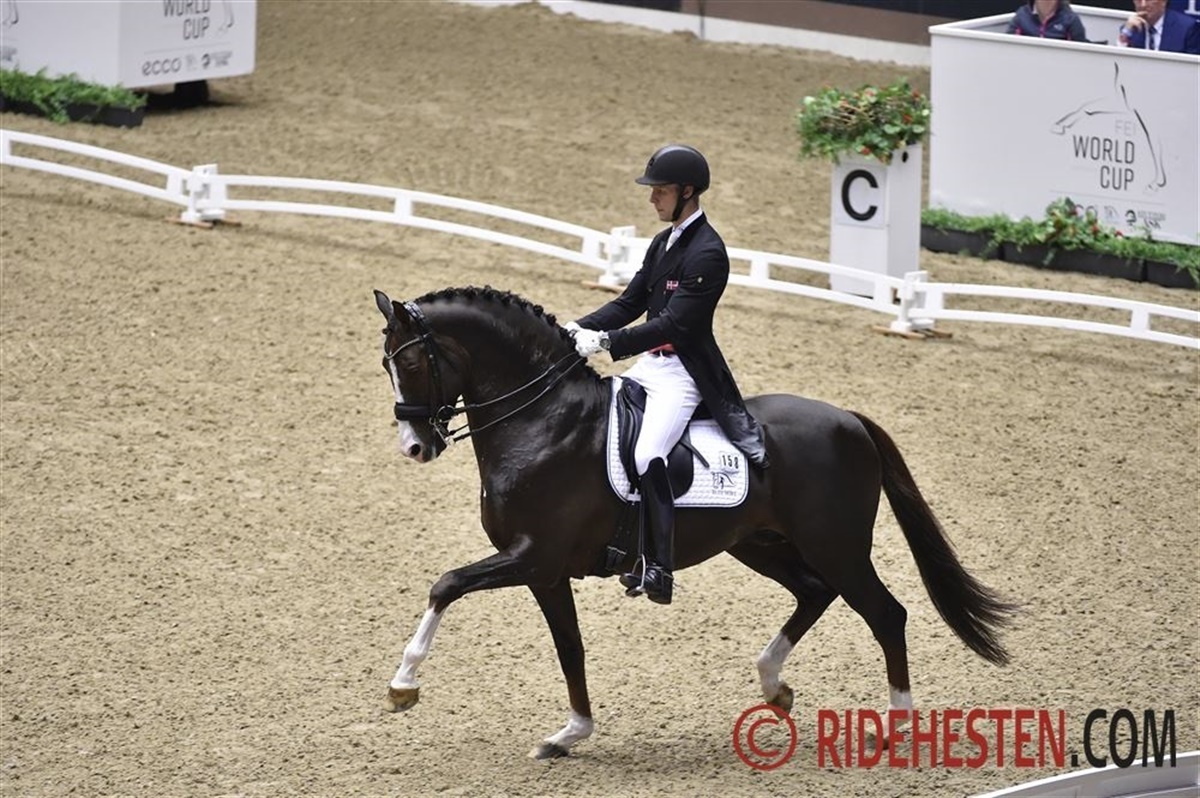 Der er en super stemning i Jyske Bank Boxen her hvor der afvikles Grand Prix Special i den 3-stjernede internationale tour. Daniel Bachmann Andersen har redet sig i spidsen for konkurrencen med et sikkert ridt på avlshingsten Blue Hors Don Olymbrio, og der var naturligvis tilfredshed at spore hos træner Lars Petersen, der har ansvaret for uddannelsen af heste og ryttere på Blue Hors, på trods af at han bor i USA, hvor han driver sit eget træningscenter i Wellington, Florida.