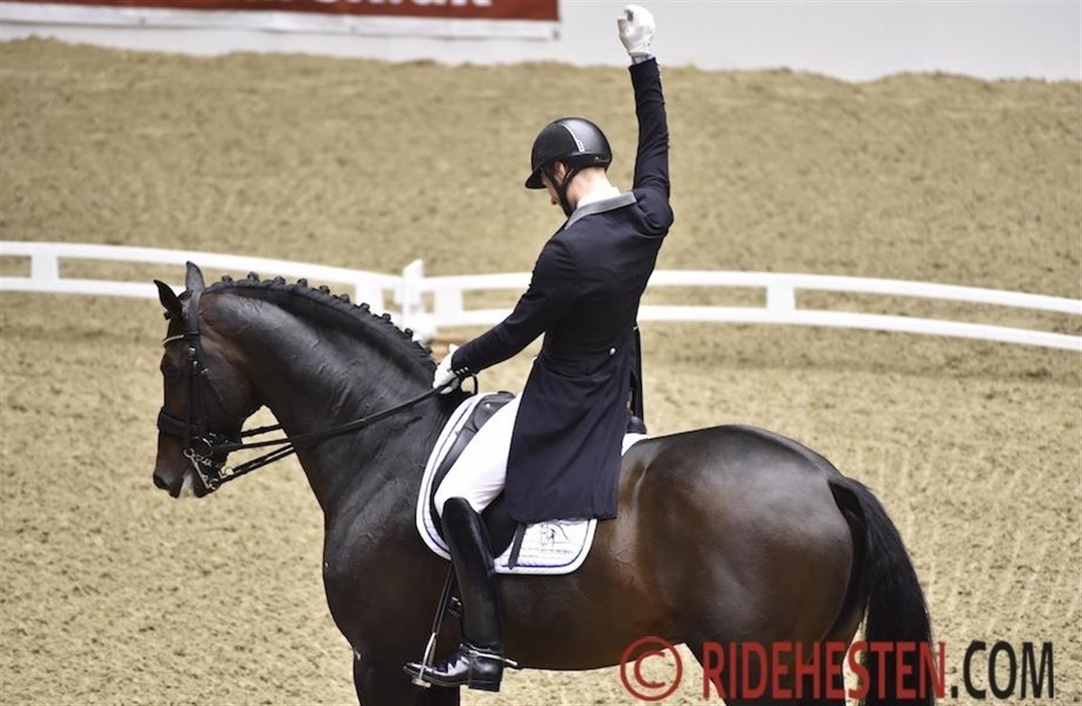 – Et af de sværeste steder var, da jeg skulle ride fra travers til højre direkte ud i galoppirouette til højre og med det samme derfra changement til venstre, travers til venstre og galoppirouette til venstre, og så igen changement til højre og travers til højre. Lidt ligesom en galop-zigzag med indbyggede pirouetter og changementer. Det er svært, fordi der er en helt speciel musik til både traversen og pirouetten, som skal passe til, så derfor skal det bare sidde i skabet – og det gjorde det heldigvis. Alt i programmet var svært, så jeg skulle virkelig holde tungen lige i munden, men det gik rigtig godt. Jeg red 80%, jeg er så glad, siger Daniel Bachmann Andersen.