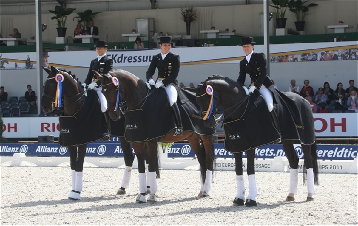 I det samlede felt på 16 unge internationale rytter var det Daniel Bachmann med Donna Silver, der med en sjetteplads og 70,237%, klarede sig bedst med et smukt og harmonisk program uden egentlige øvelsesfejl, men piafferne var det lidt svage punkt. Det samme kunne man egentlige sige om Sofie Jeppsen men hertil kom at også passagen endnu er med beskedent løft og holdningen lovlig snæver og rejst. De sluttede på en 13. plads med 66,158 %. For Anna Kasprzak og Langkjærgårds Donna Fetti gik det helt galt. Efter et især godt travprogram og flotte changementserier mislykkedes overgangen fra galop til trav ved C imod slutningen af programmet totalt, og så gik Donna Fetti helt i baglås. Trods utallige forsøg lykkedes det ikke Anna at få hoppen i trav, så hele diagonalen som skulle havet været fri trav blev slet ikke vist. Det kostede så meget at det kun blev til en sidste plads. Selv om kun to af de tre ryttere tæller til holdresultatet sluttede Danmark desværre på en femte og sidste plads. Vindere blev det stærke tyske hold efterfulgt af Spanien og Holland. Den individuelle konkurrence rides lørdag formiddag inden det for alvor går løs for seniorerne med Grand Prix Special kl. 12.30