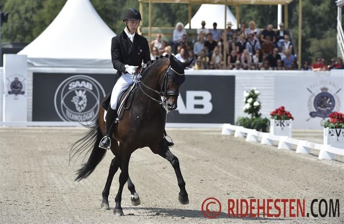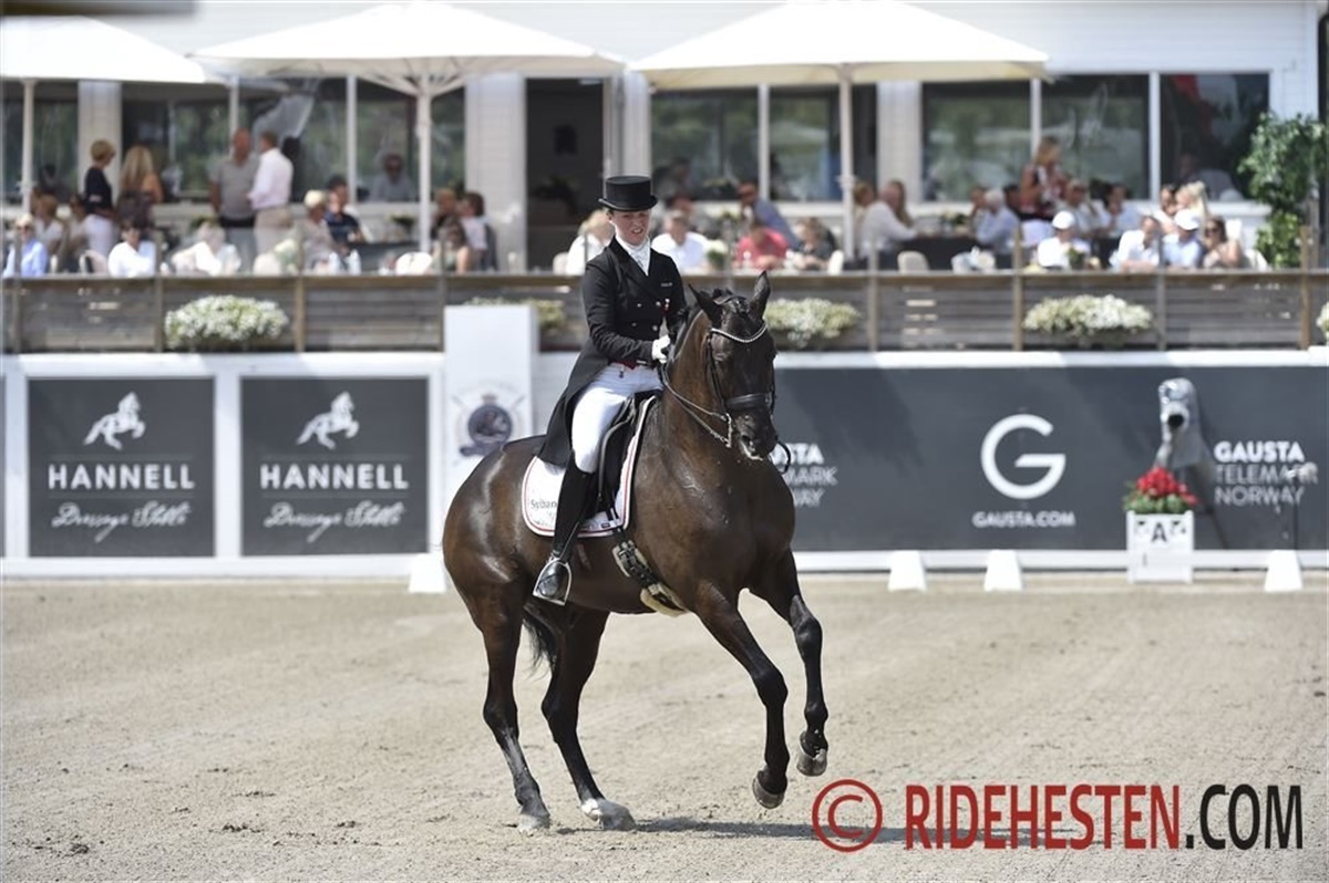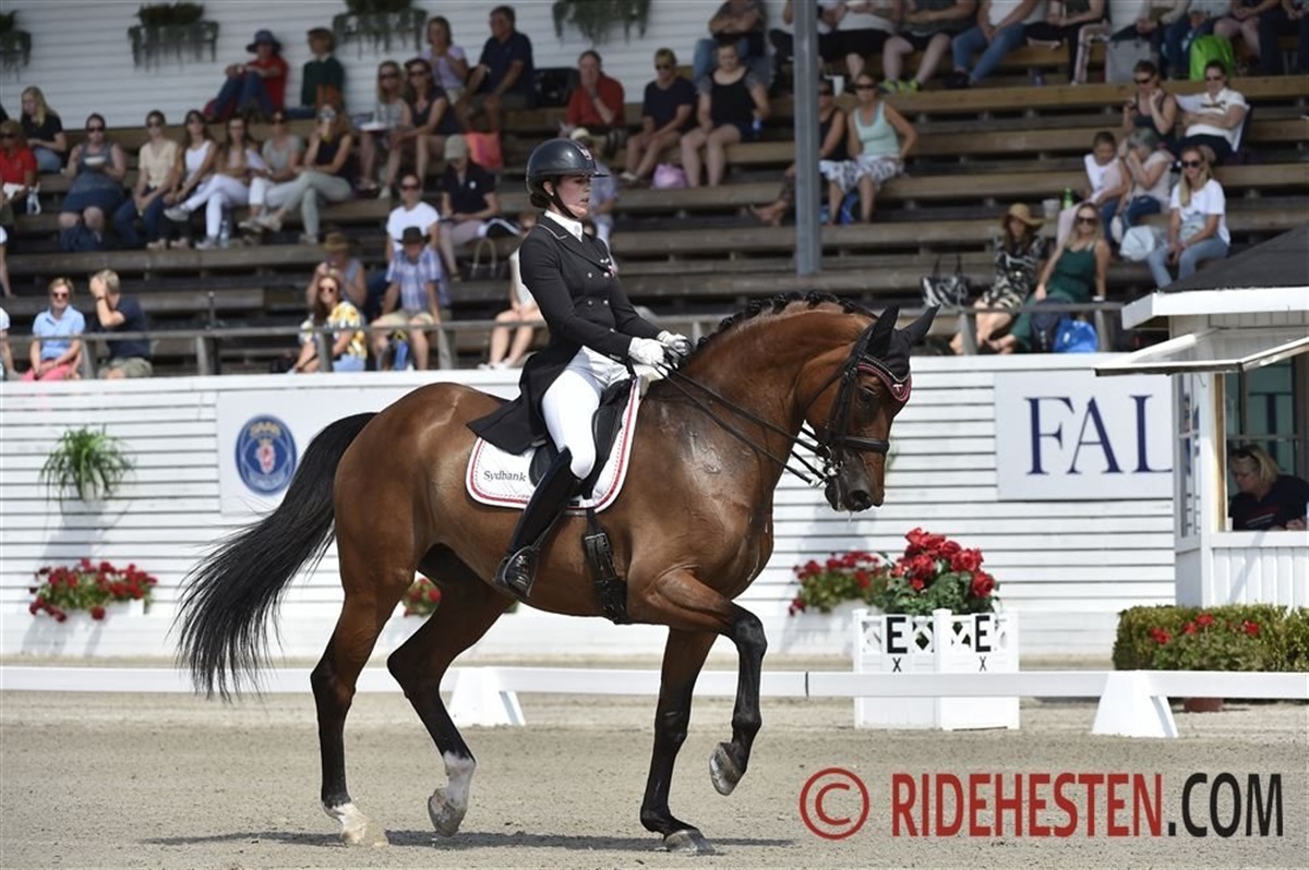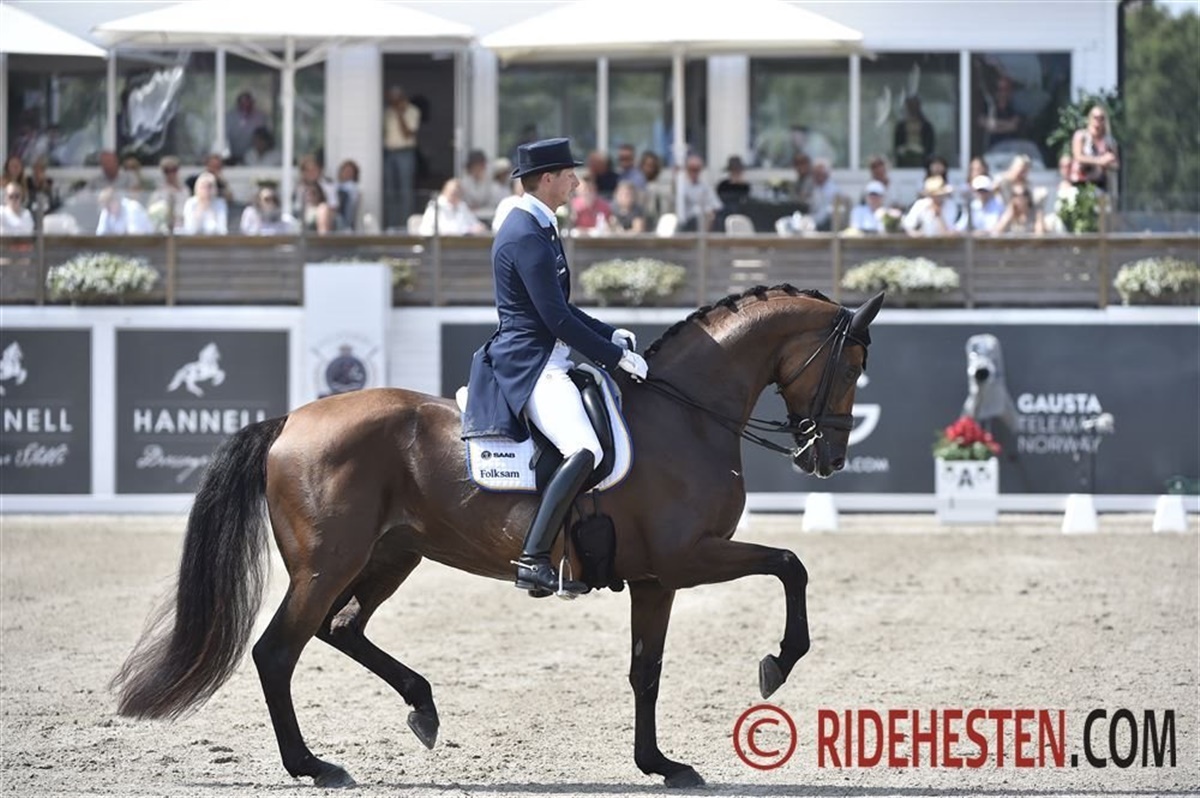 Patrik Kittel og Well Done de la Roche Cmf kom ind på anden pladsen med 75,196% og så var der mange ryttere placeret omkring 70 til 72 procent. Næstbedste danske ridt stod Carina Cassøe Krüth for med May-Day Graftebjerg e. Dream of Heidelberg (opdr. Arne Bjerg-Nielsen) Hun fik vist fine piaffer, på trods af at hoppen gødede i den første. Der indsneg sig en lille fejl i starten på etterne, og det blev så opvejet af fine pirouetter. Med 69,478% gik hun ind på 12. pladsen. Helene Melsen/Aston Martin fulgte efter på 14. pladsen med 68,935% mens Nanna Skodborg Merrald fik et par dyre fejl i begge serier med Wasabi og sluttede med 67,987% på 15. pladsen. I morgen skal rytterne ride hhv. Special eller Kür.
