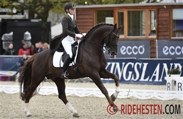 Charlotte Herring var nærmeste konkurrent med Bufranco e. Negro/Zevenster. Efter et flot ridt til 71,579 % blev det til en andenplads og Anne-Marie Hosbond red sig ind på tredjepladsen med Diva Unik e. Blue Hors Don Schufro/Primus AA (opdr. Morten Skov), efter de red til 68,289 %.