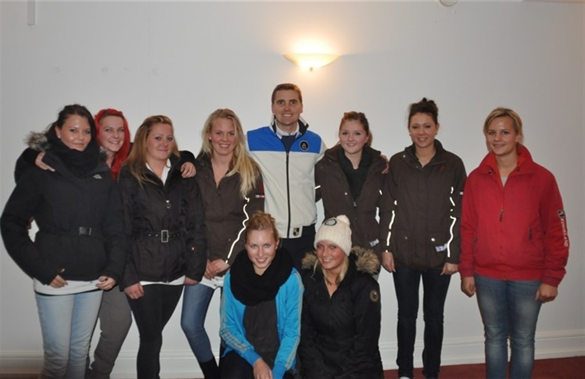 Andreas startede aftenen til hest, hvor han red Tørveslettens Stamina. Imens fortalte han om træning af sine dressurheste, og hvad hans plan er med Stamina er i fremtiden. Bagefter blev vi vist rundt i de flotte stalde på Helgstrand Dressage, hvor Andreas fortalte om staldenes indretning. Til sidst blev vi ført ind i stuehusets gildesal, hvor Andreas fortalte sin livshistorie, og kom med gode råd til den daglige træning af hesten og stævner. Læs mere om uddannelsen og aktiviteterne på Danish Horse College hjemmeside via linket.