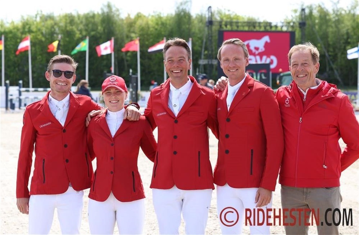 Rikke Belinda Barker leverede to nulrunder, mens Lars Bak Andersen og Andreas Schou red en fejlfri runde og en med fire. Martin Dinesen Neergaard var lige ved og næsten i begge runder, men endte med to runder med fire fejl. Det danske hold endte med sammenlagt otte fejl, præcis som holdene fra Tyskland og Polen, og dermed blev tiden afgørende.