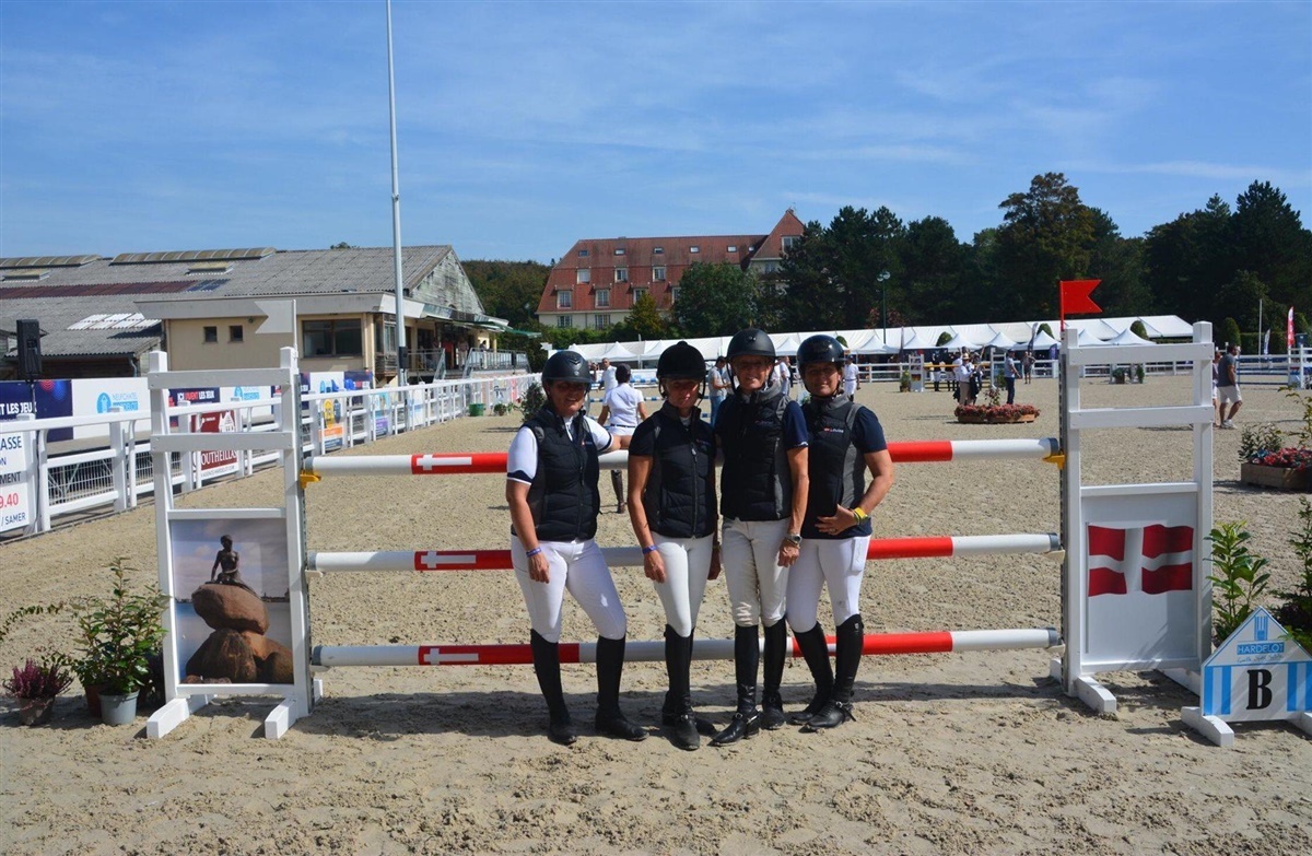Dagen i dag bød på to runder, og samlet tillagde det danske hold blot fire fejl til gårsdagens resultat fra dagens første runde. Jeanet Glud Jørgensen med 4Moor Favorant e. Favorit Ask/ Caretino (opdr. Jeanet Jørgensen) leverede en runde med fire fejl og en fejlfri runde i dag, Louise Rich med Dynamic e. Diarado/ Cassini I gjorde det samme, Rikke Kjær med Cocorico de Riverland e. L'Arc de Triomphe/ Kashmir van het Schuttershof startede med en fejlfri runde og herefter en med fire fejl. Natasja Kock Mogensen med Cooper e. Lord Z/ Polydox var igen i dag bedste dansker, og leverede to fejlfrie runder, som også betyder, at hun har avanceret i den individuelle konkurrence, som afgøres på søndag. Det danske hold sluttede med 19,37 fejl