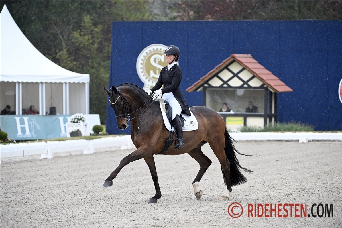 Trods et voldsomt uvejr, der har tvunget arrangørerne af Falsterbo Horseshow til at revurdere tidsplanen, startede Grand Prix'en som programsat, klokken 11.15 i formiddags. Her var tre danske ekvipager til start, hvoraf to af dem formåede at ride en individuel placering hjem. Ingen af dem kunne dog slå de stærke tyskere, der satte sig på både første-, anden- og tredjepladsen. Bedst af dem alle var dog Helen Langehanenberg på Facilone Frh e. Fürstenball/ de Niro. Parret red et stabilt program og blev belønnet med klassens suverænt højeste procent, nemlig 73,674%.