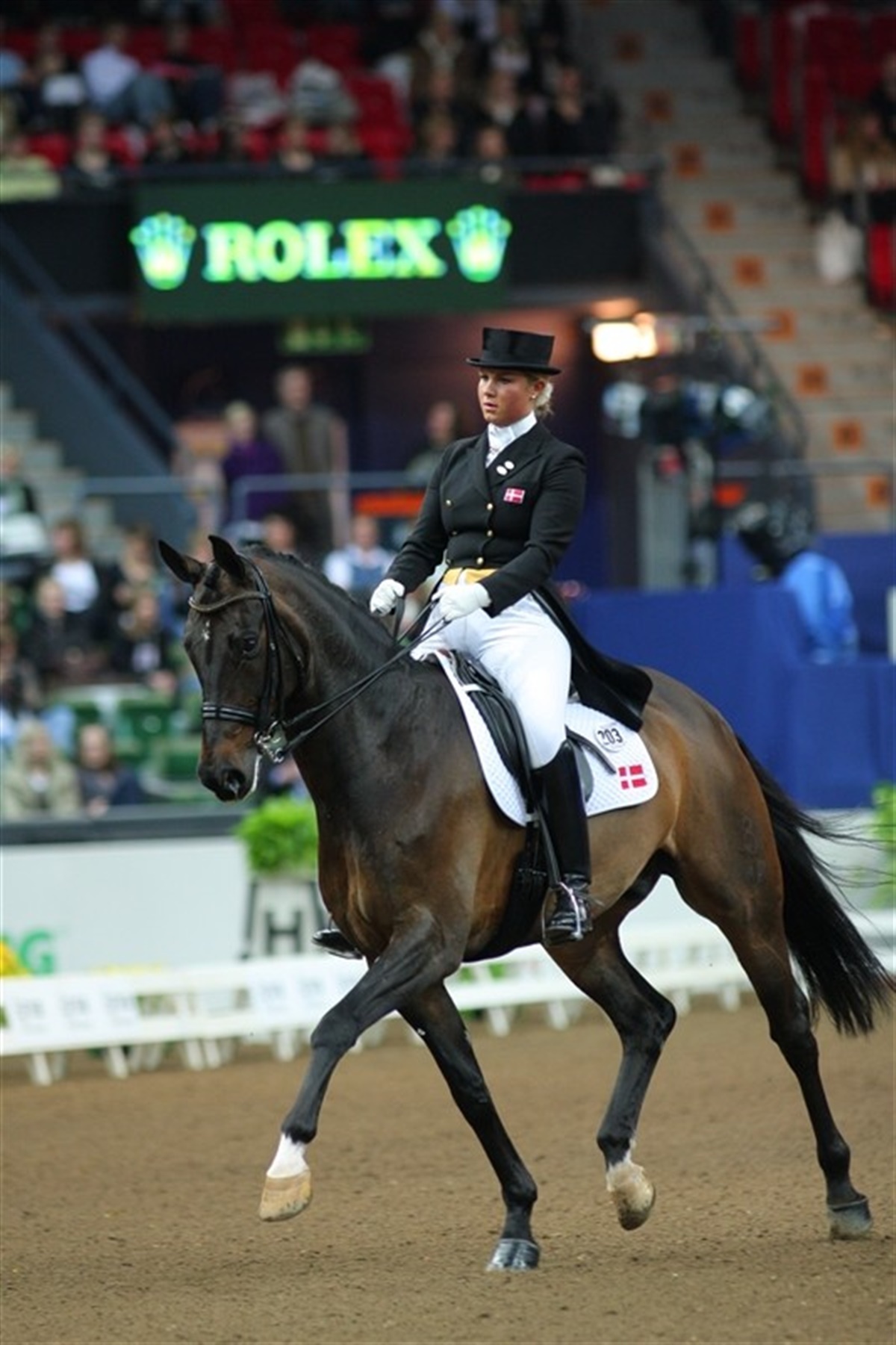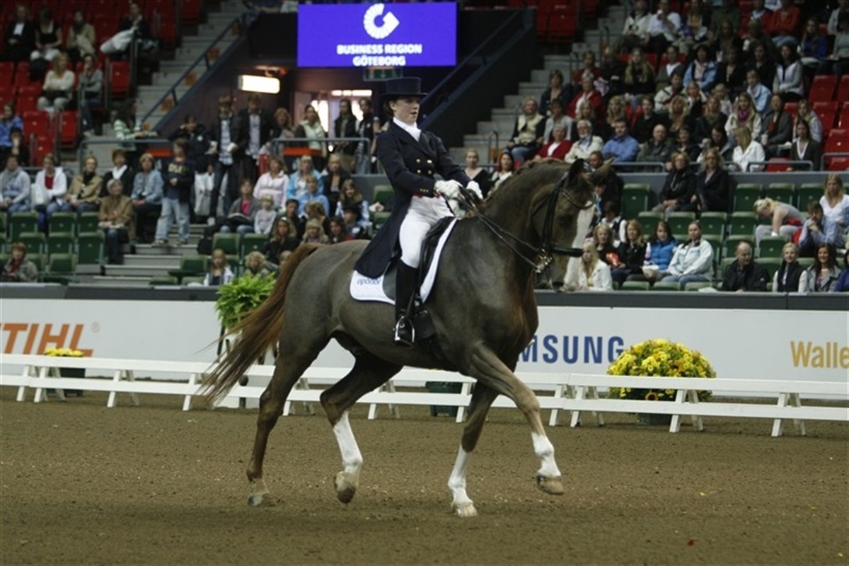 En junior-, en ung- og en seniorrytter - det var konceptet i dagens landsholdskamp i forbindelse med landskampen i dressur i Göteborg. Det danske landshold havde trukket startnummer et i kampen mod to svenske, et hollandsk og et tysk hold. Første rytter ude for Danmark var Camilla Blicher og Flying Diamond e. Diamant. Camilla fik lidt at se til inde på banen, for Flying Diamond var noget imponeret af omgivelserne, alligevel lykkedes det for Camilla at få den store, røde vallak godt rundt på banen. I et program, som stort set var uden fejl. Dommerne honorerede Camilla Blicher med 64,1% og det skulle vise sig at blive juniorafdelingens næsthøjest score næstefter en hollandsk rytter. Den regerende juniormester Anna Kasprzak er i denne sæson overgået til ungrytter rækken. I Göteborg red hun Select Ecco, den dejlige 9-årige vallak, som hun fik sidste efterår. Det var kun "Sørens", som han kærligt kaldes af familien, 4. stævne og det var nogle imonerende rammer, som den brune vallak skulle ind og præsterer i. Anna fik redet et program med mange højdepunkter, b.a. har Select Ecco en dejlig taktfast travbevægelse med stor løft og skulderfrihed. På minussiden misforstod hesten Annas hjælpere fra volten ind i den første travers, som mislykkedes og en tællefejl i den ene changementsserie kostede også dyrt. Alligevel stod ryttere og trænere i den danske lejer noget uforstående overfor dommernes vurdering til 59,56% Dermed var det helt op til Joan K. Jensen og Albert at sikre Danmark en topplacering. Som første rytter i Grand Prix lå presset på Joans skuldre, og efter en lidt tøvende start fik Joan og Albert mere sving og facon på deres ridt, med flotte passage og fine piaffer samt flotte changementsserier som højdepunktet. Albert er renstammet Oldenborg, og han har racens kraftige statur, men han bevæger sig med stort sving og meget gummi, og det er også medvirkende til, at parret giver tilskuerene noget at begejstres over. Joan blev bedste rytter i Grand Prix-turen og konkurrencens næstbedste rytter, kun slået af den hollandske ungrytter Femke Beljon og Kasparov. Der var et danskt indslag på det vindende hollandkse hold, idet Anke Ter Beek, førsterytter på York Stutteri, var medvirkende til at sikre hollandsk sejr, idet hun og Kaiser Wilhelm sluttede Grand Prix'en på andenpladsen med 67,33% - en pointssum, det set fra sidelinien virkede en kende lavt set i lyset af det flotte, flydende program som parret viste, med fine passage og piaffe øvelser, gode changementsserier og kun et lille kiks i den sidste pirouette. Svenskerne var uheldige på hjemmebane. Sveriges hold 1 røg ud af topkampen da Louise Nathhorst's Isidor nægtede at vise piaffen og eksploderede over banen i bukkespring. Sveriges hold 2 blev elimineret da Emma Karlssons dejlige hoppe Faradera bed sig i tungen og blev diskvalificeret. Pointene fra dagens konkurrence tager rytterne med til morgendagens kür-klasse, som afvikles i morgen aften efter Grand Prix springningen. Resultat: 1. Holland 205, 683 2. Danmark 191, 250 3. Tyskland 187,692 4. Sverige I 184, 467
