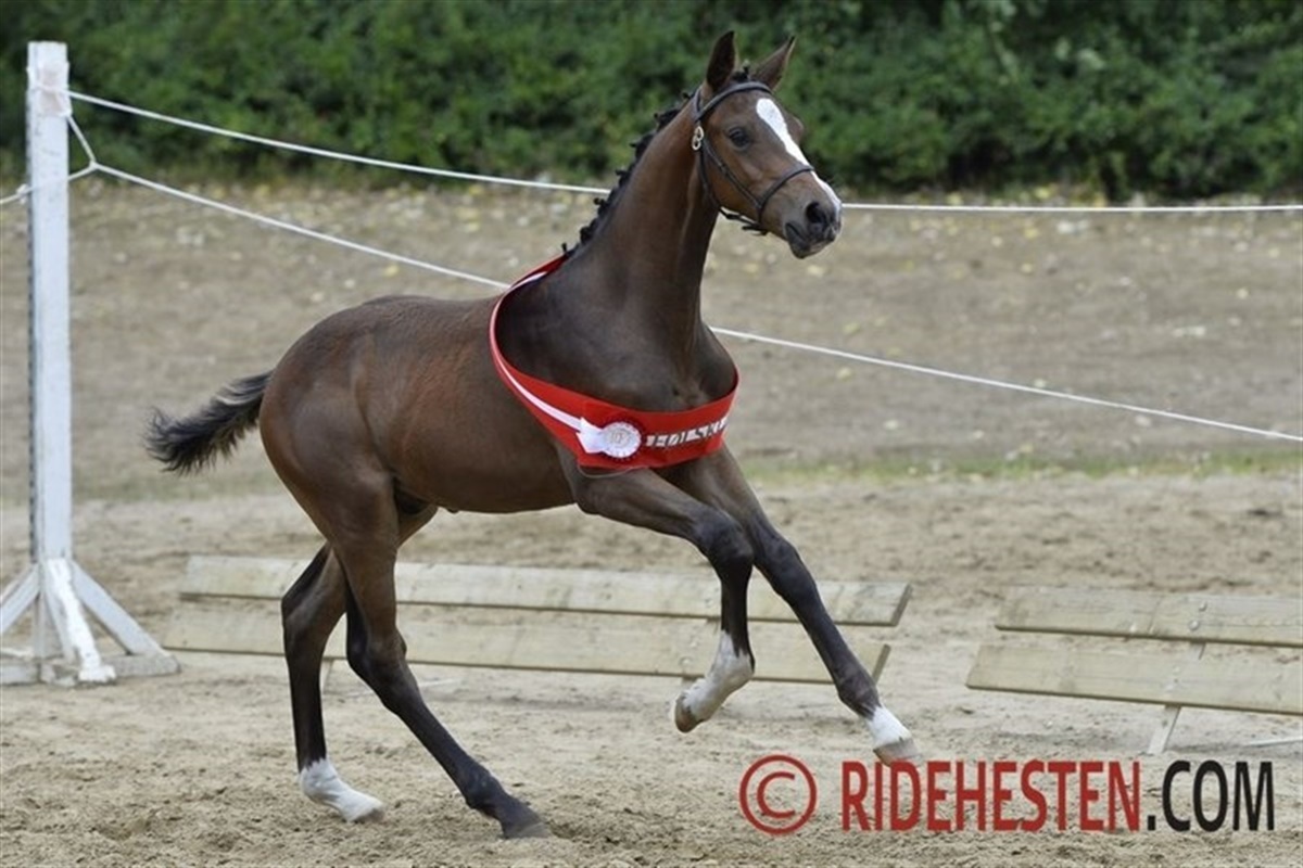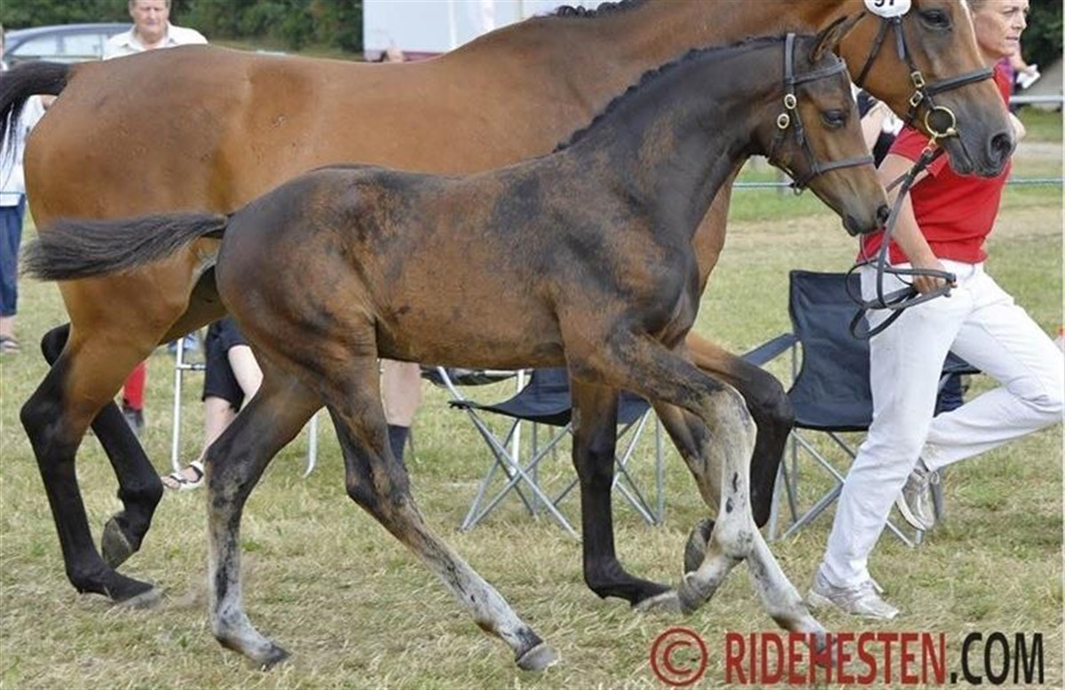 Kat.nr. 409 Nio Lille Lunden e. Favorit Ask / Casir Ask / Fredericus Rex. Skuets bedste springbetonede hingsteføl i region 6 og udtaget til eliteskuet. Et yderst tiltalende og maskulint føl med en overlegen galopbevægelse og ud ud af hoppestamme med masser af præstationer.