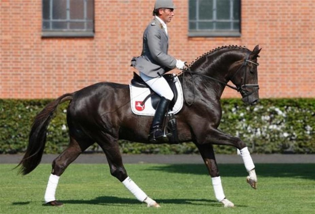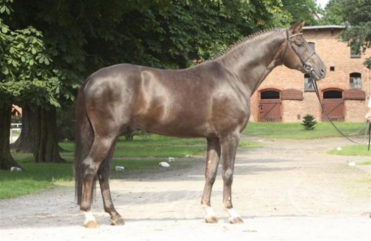 Den nu 10-årige hannoveranerhingst Dannebrog e. Blue Hors Don Schufro/ Brentano II/ Arogno er avlet af danske Dorthe M. Jeppesen (DMJ Horses) og blev som føl solgt til den danske hingstestation Blue Hors, der fremstillede hingsten til hannoveranerhingstekåringen i Verden, hvor han blev solgt på auktion til statsstutteriet i Celle.