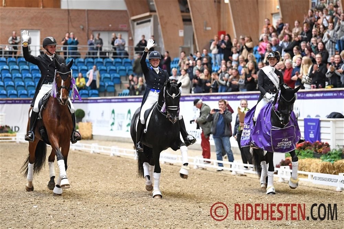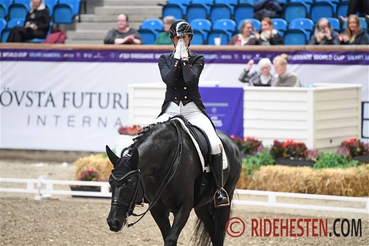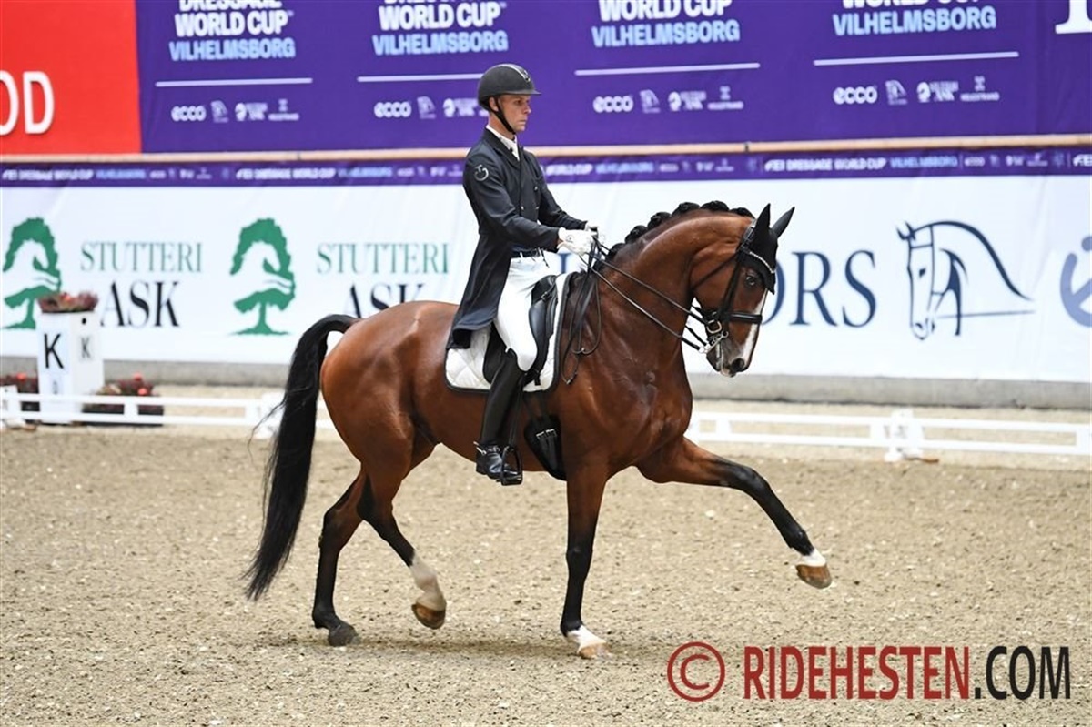 Nanna og Carinas VM-holdkammerat, Daniel Bachmann Andersen, debuterede også en ny hest i World Cup-sammenhæng, og hvilken debut! Med den 10-årige dansk varmblodsvallak Zippo M.I. e. Blue Hors Zack/ Blue Hors Don Schufro (opdr. Steen Bo Larsen) viste Daniel virkelig mange højdepunkter, og der er ingen tvivl om, at med mere rutine kan den brune vallak score endnu vildere procenter. Daniel tog ligesom Carina det sidste stykke ad midterlinjen med tøjlerne i en hånd, mens publikum klappede, hvilket Zippo tog i stiv arm. Daniel kunne meget velfortjent tage på æresrunde med sin to holdkammerater med en score på 81,330% og en tredjeplads.