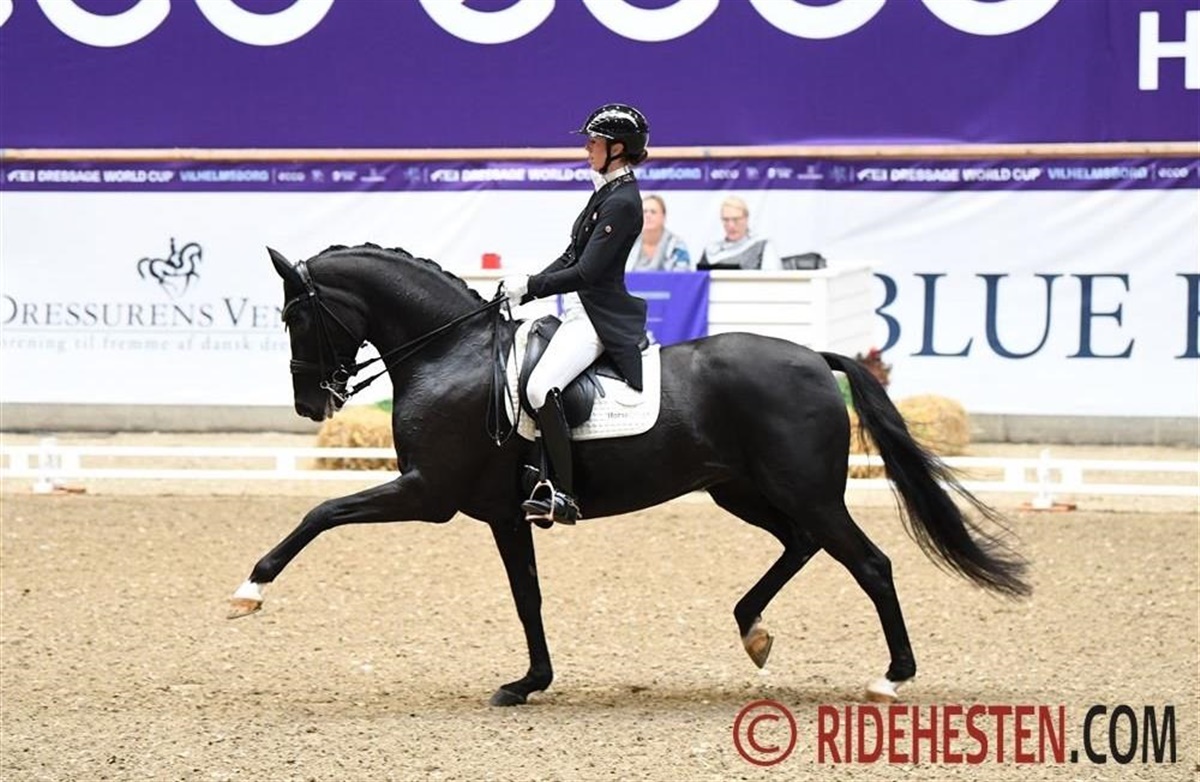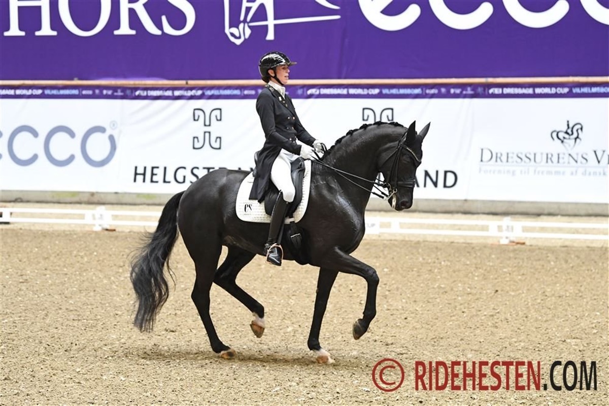 Den 11-årige avlshingst Blue Hors St. Schufro e. St. Moritz Junior/ Blue Hors Don Schufro havde med Nanna Merrald Rasmussen i sadlen sin World Cup-debut på Vilhelmsborg i denne weekend. Den populære, sorte hingst, som blandt andet er far til årets UVM-vinder i dressur for 5-årige heste, Lyngbjergs St. Paris, har endnu meget lidt erfaring på dette niveau, men med en score på 74,605% i den korte Grand Prix i går og et kürridt til 82,610% i dag lover det vanvittig godt for fremtiden. Efter en virkelig flot World Cup-kürdebut, hvor der var mange højdepunkter som bl.a. galoppiruetterne, fri trav og piaffe-passage, blev det til en flot andenplads. Således kunne Nanna tage turen rundt på æresrunde i hallen lige efter VM-holdkammeraten Carina. Placeringen betyder uden tvivl meget for Blue Hors-rytteren, der selv har uddannet hingsten til Grand Prix-niveau.