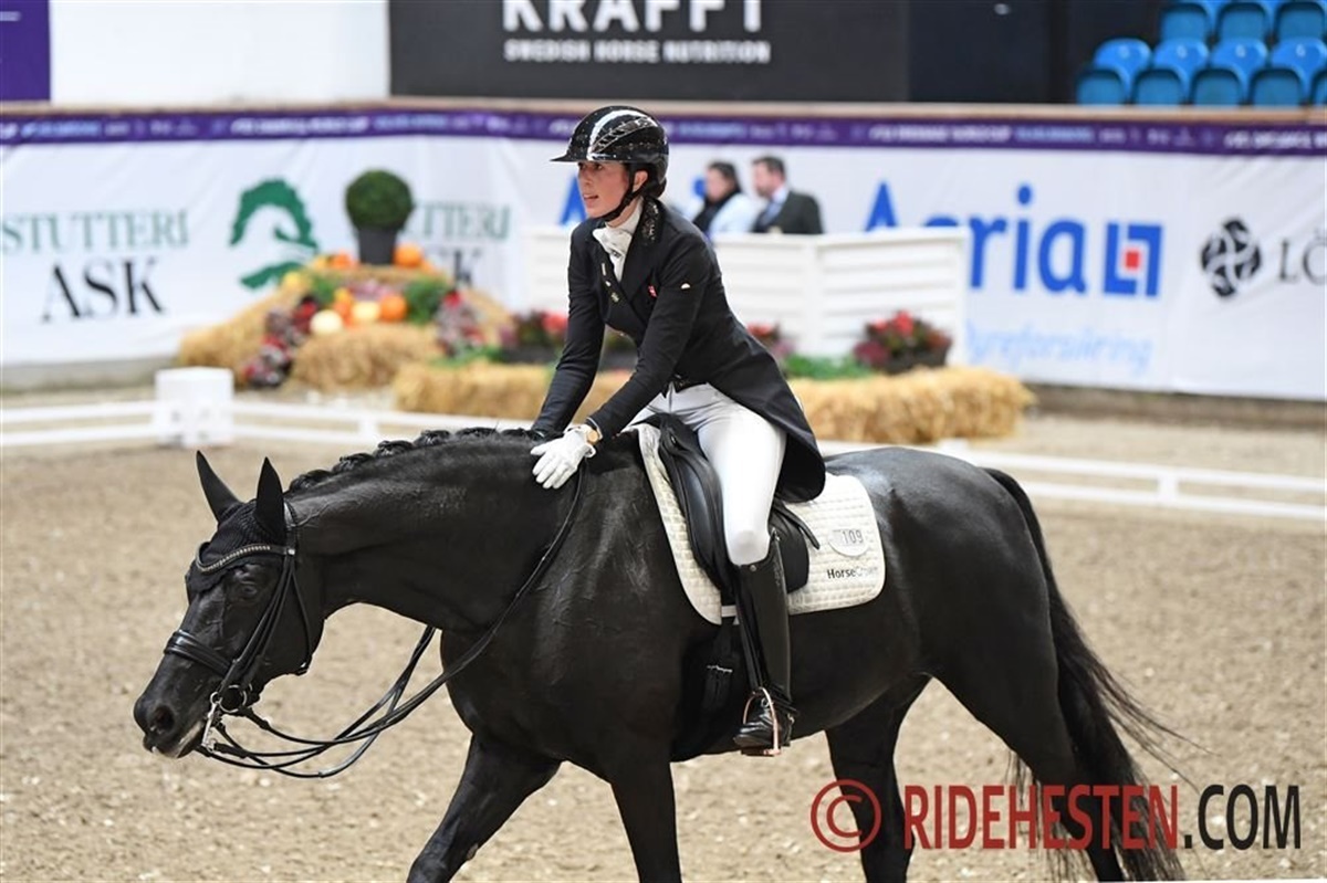 I år var Carina og "Danse", som dansk varmblodshoppen hedder i daglig tale, på pletten med ny kürmusik og dertilhørende koreografi. Til tonerne af blandt andet Backstreet Boys og One Direction viste makkerparret igen, at de kan noget helt særligt, når det gælder kür. Det lyser langt ud af den smukke, sorte hoppe, at hun elsker at være i fokus og optræde inde i arenaen, så tilnavnet Danse kommer virkelig til sin ret. Ekvipagen blev klappet det sidste stykke op ad midterlinjen, som Carina sædvanen tro, fristes man til at sige, tog med tøjlerne i en hånd. Det var en meget velfortjent score på hele 85,925%, der efterfølgende tikkede ind fra dommerne, og dermed en sikker sejr med godt 3% ned til andenpladsen.