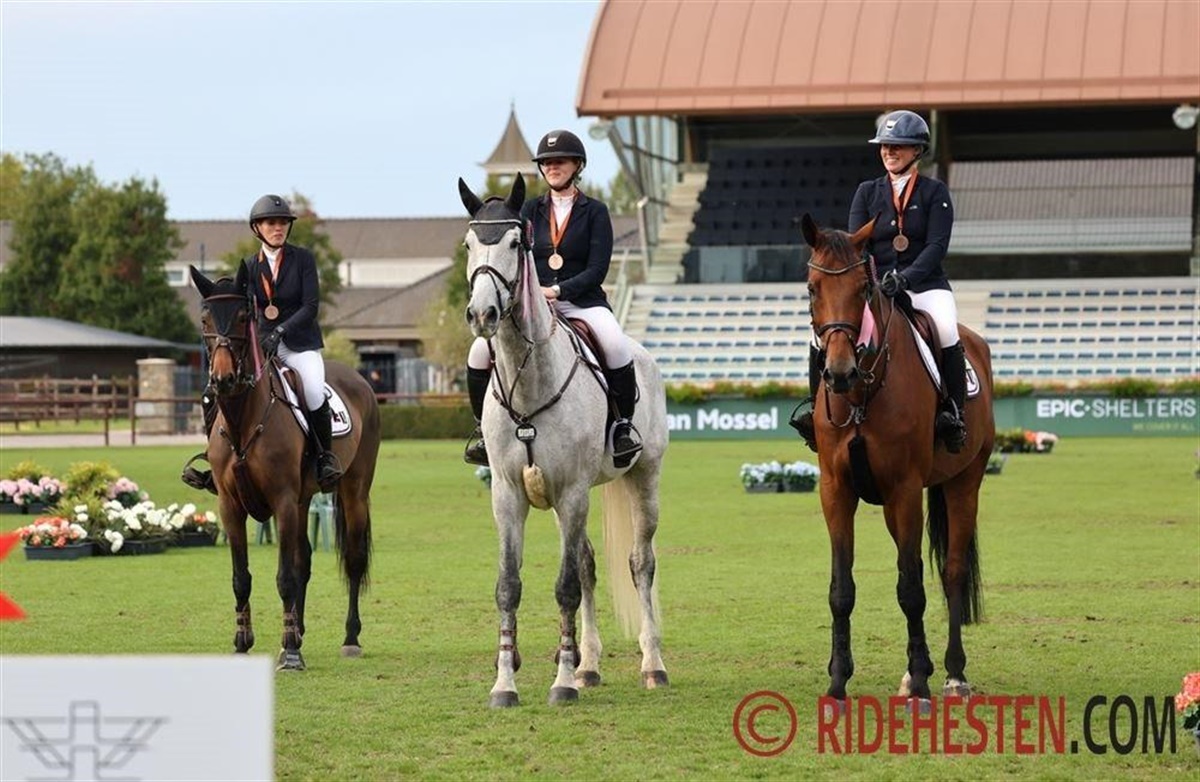 Dansk Varmblod stod noteret for 10 fejl på 1. pladsen, og så fulgte nogle spændende minutter, da først Zangersheide og Belgisk Varmblod samt Selle Francais kom i mål med flere fejl end danskerne. Irish Sport Horse leverede tre fine ridt indenfor tiden. De sluttede med 8 fejl og sendte dermed Dansk Varmblod ned på andenpladsen. To avlsforbund var tilbage Westfalen og Oldenburg International. Et af de forbund skulle efter Dansk Varmblod for at sende de tre stærke kvinder ind på en velfortjent podieplads. Det blev Westfalen som kiksede, mens OS red sig ind på førstepladsen med i alt 4 fejl mod ISH’s 8 og DWB’s 10 fejl.