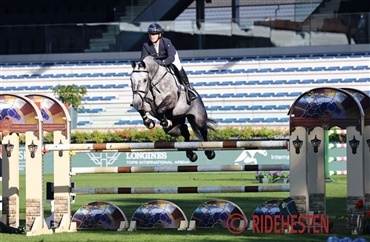 Sarah Wheler fulgte op med Syvhøjegårds Next Level e. Cyrano Ask/ Casir Ask (opdr. Niels Osterland), og den store skimmel rørte en enkelt bom undervejs, og dermed var Dansk Varmblod på 10 fejl, inden Kamilla Grauff Albrektsen red på banen med Maskedals One Man Show e. Maskedals One Man Show e. Comme Il Faut Plus/ Favorit Ask (opdr. Lene Larsen). Den 187 cm store vallak nærmest legede med forhindringerne. Helt ubesværet galoperede han banen rundt, da der manglede fire forhindringer, tabte Kamilla stigbøjlen. Det fik ingen indflydelse på deres fællespræstation, de galoperede fejlfrit over målstregen. Da klassen var slut havde det fejlfrie ridt givet Kamilla en individuel 5. plads.