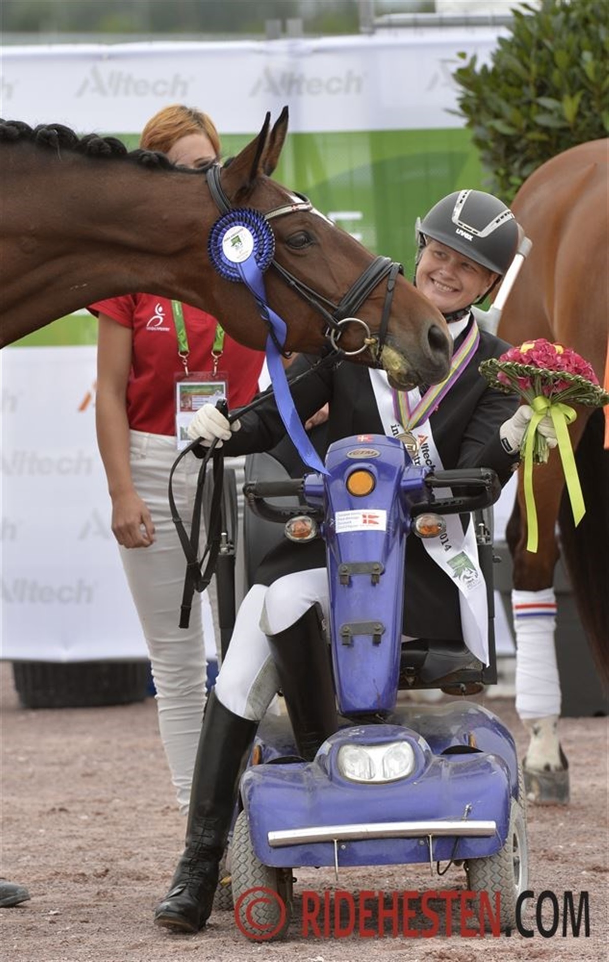 Præmieoverrækkelsen fik et kedeligt efterspil, da den hollandske rytter Sanne Voets hests tøjler blev filtret ind i hendes elscooter og det sendte hende til jorden. Hun var tydeligt mærket af smerter, men paramedicinerne var hurtigt til stede, og efter nogle minutter fik de hende tilbage på scooteren og ud af stadion.