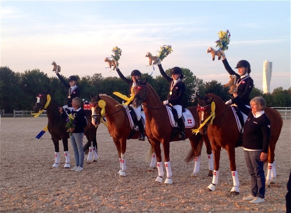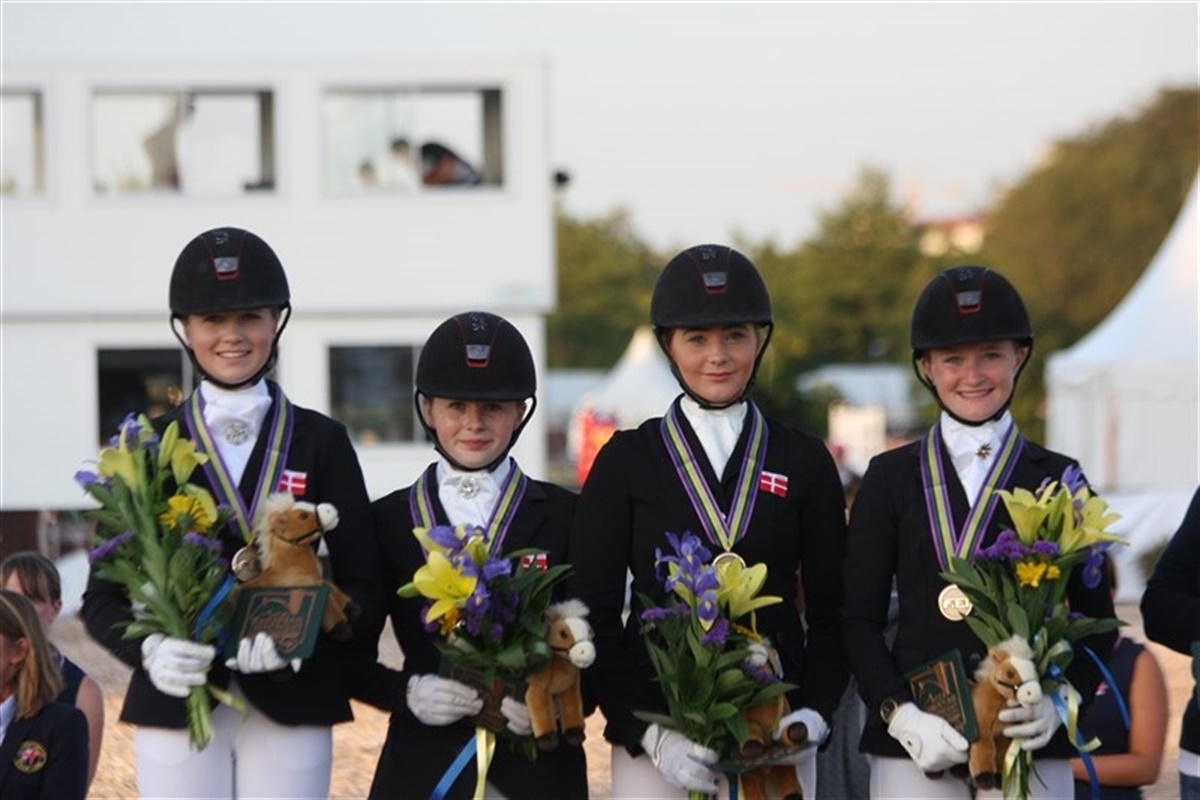 De fire danske ponyekvipager red op til deres bedste i holdkonkurrencen i dressur, hvor alle har vist topform. Efter første halvdel af konkurrencen havde danskerne lagt sig i spidsen, men intet var afgjort inden sidste rytter, i det de danske, tyske og engelske ryttere lå tæt placeret. Det viste sig også, at den sidste rytter i konkurrencen blev afgørende for medaljefordelingen.