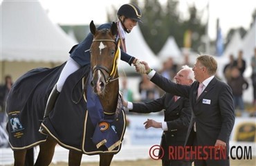 Med intet mindre end 70,605% sejrede dansk varmblodshoppen Volstrupgaards Cassiopeia under Allan Skov i Intermediaire I ved Arctic Equestrian Games i dag. Volstrupgaards Cassiopeia e. Come Back II/Caletto II er elitehoppe og mor til to døtre kåret i RDH, hvoraf den yngste er guldmedaljehoppen Quela VG e. Quidam's Rubin, der er udtaget til Unghestechampionatet i springning i år med Allan Skov. I feltet af tolv ekvipager var også Lotte Skjærbæk til start på avlshingsten De Noir e. De Niro/Matcho X. Parret opnåede placering som nr. 5 med en score på 64,474%. I Grand Prix var der 9 ekvipager til start og heraf kun en dansk ekvipage, som til gengæld tog sig af sejren og de 8.000 norske kroner. Det var Bo Høstrup og den danskfødte holstener og tidligere springbetonet fløjhingst i Dansk Varmblod, Cajo, der med 67,255% ikke var til at overgå. Bo Høstrup annoncerede i 2010 at Cajo skulle trækkes ud af sport pga. en skade, men nu ser det ud til at hesten igen er i topform. I begge klasser var en stor del af de startende heste Dansk Varmblod.