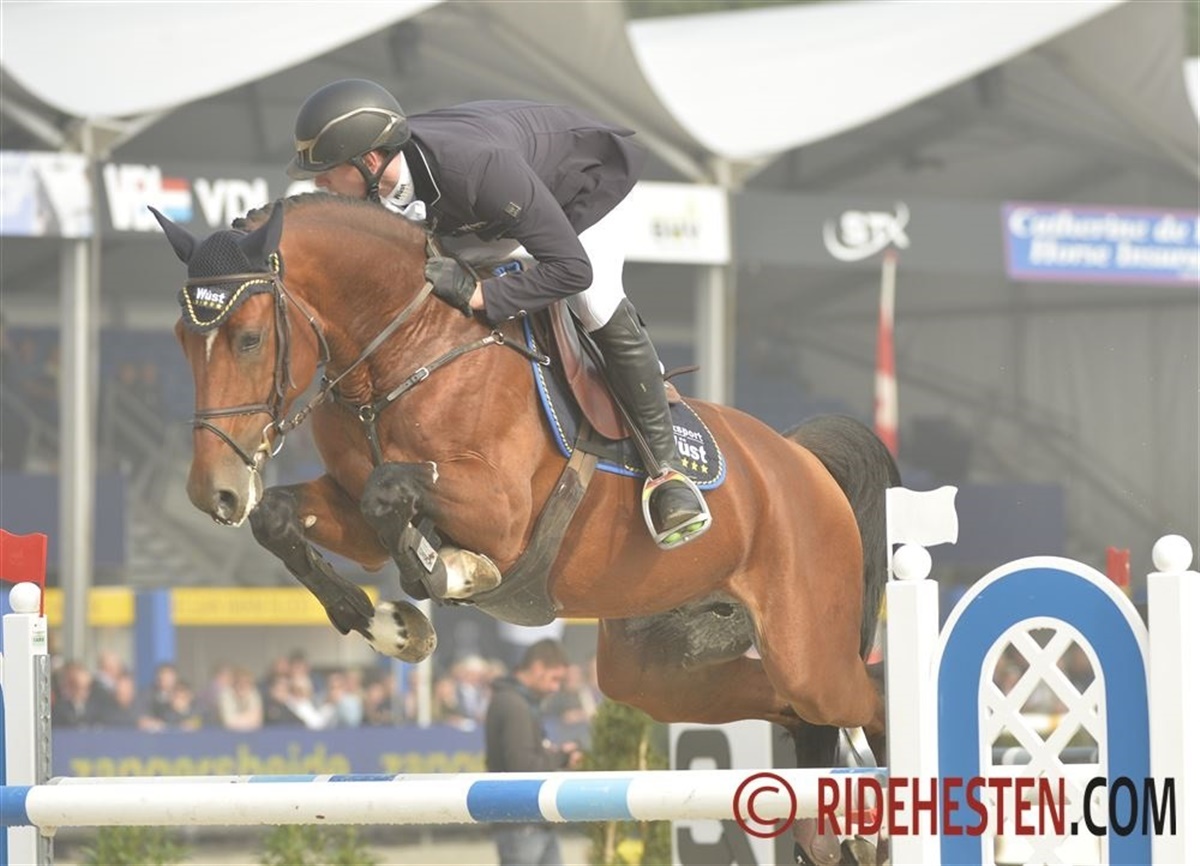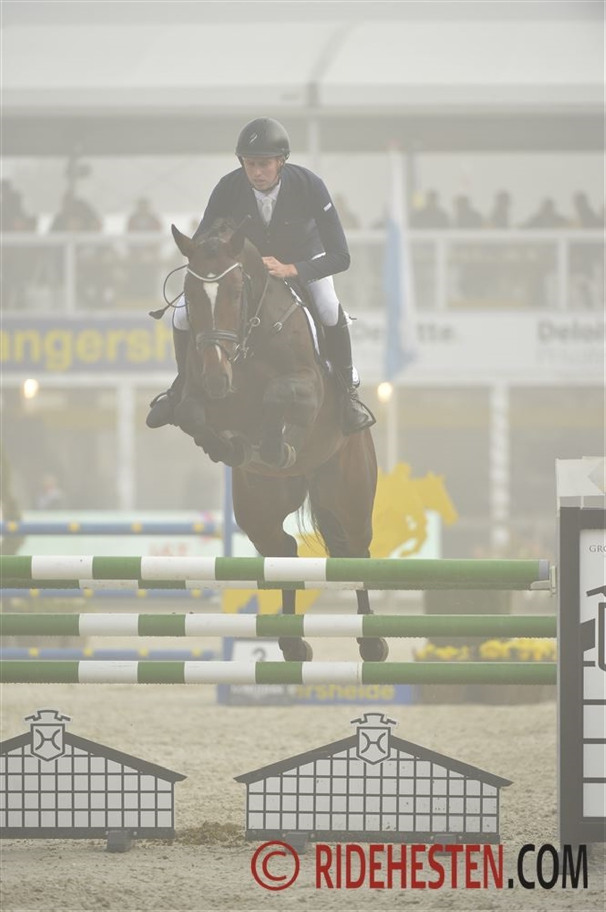 Så havde vi en deltager tilbage, Jesper Meyenburg med Bøgegården Gladiola e. Bøgegårdens Graf’s Stakkato/Bøgegårdens Apollo (opdr. Stina og Jørgen Schmidt) - Gladiola har sprunget med stor sikkerhed i kvalifikationerne, og Jesper lagde lidt forsigtig ud med hingsten, som sprang til på de to første forhindringer, men i en fast afstand til en stor oxen kom Jesper på mellemhånd - nogle ryttere red syv galopspring mange red på seks. Gladiola sprang skævt over oxeren for at få noget plads, og han bragede ned i støtten. Jesper standsende og kiggede bekymret på hingsten. Han valgte at udgå. Støtten var smadret og det tog en rum tid førend konkurrencerne kunne genoptages. Jørgen Schmidt, hingsten ejer og opdrætter kunne efterfølgende fortælle, at Gladiola har nogle store hudafskrabninger, men ser ellers ud til at være kommet over hændelsen uden flere skader.